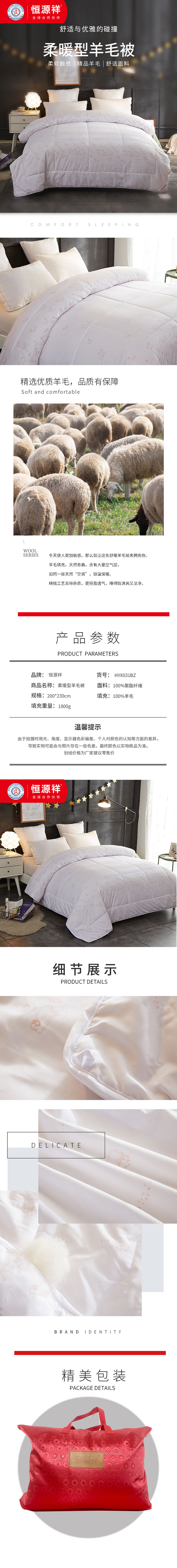 恒源祥 HYX031BZ柔暖型羊毛被 200*230cm