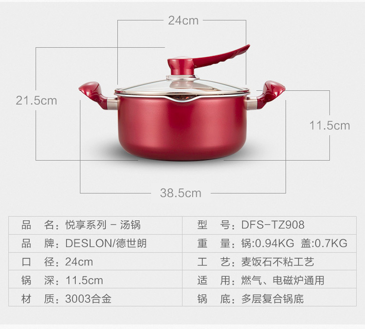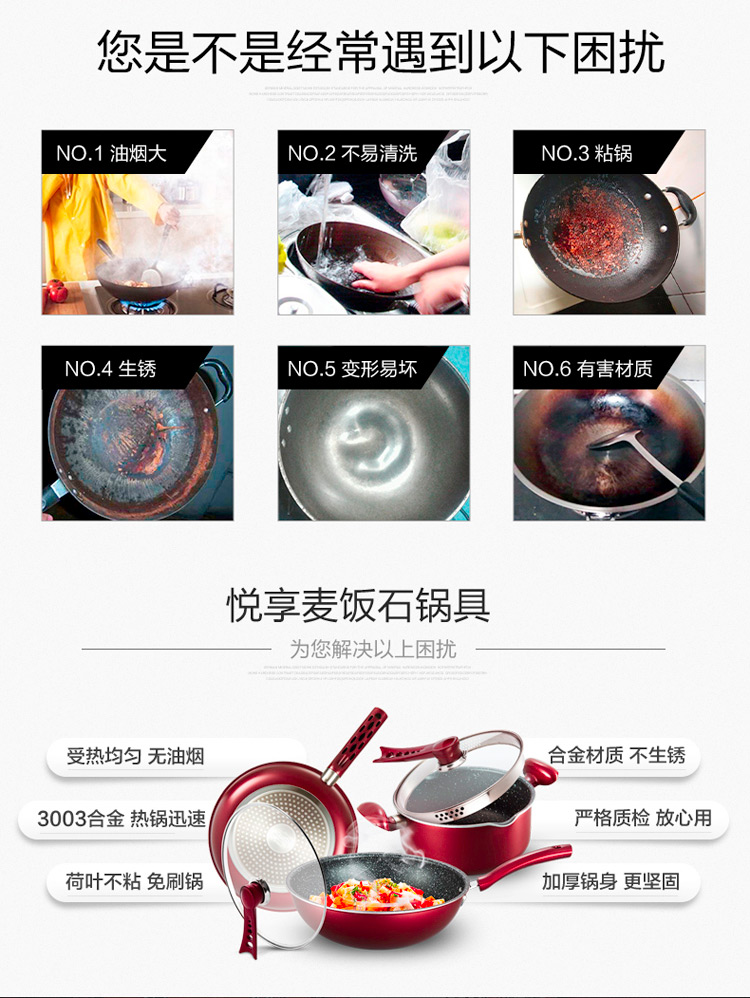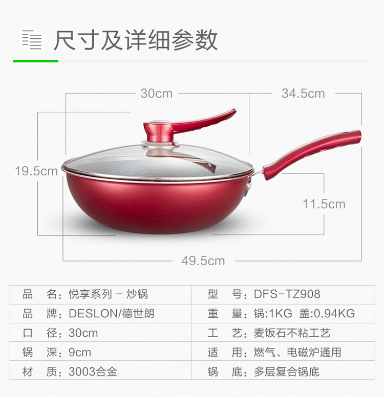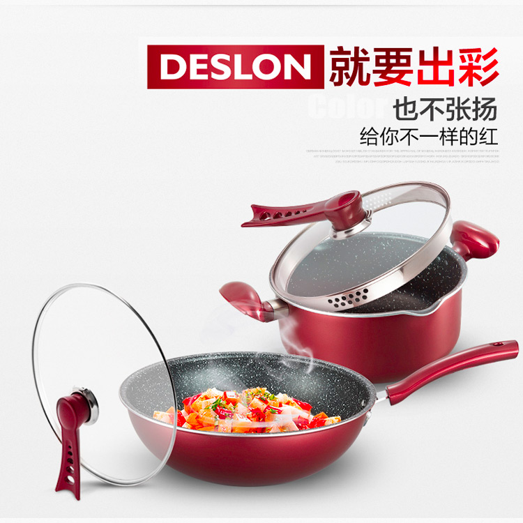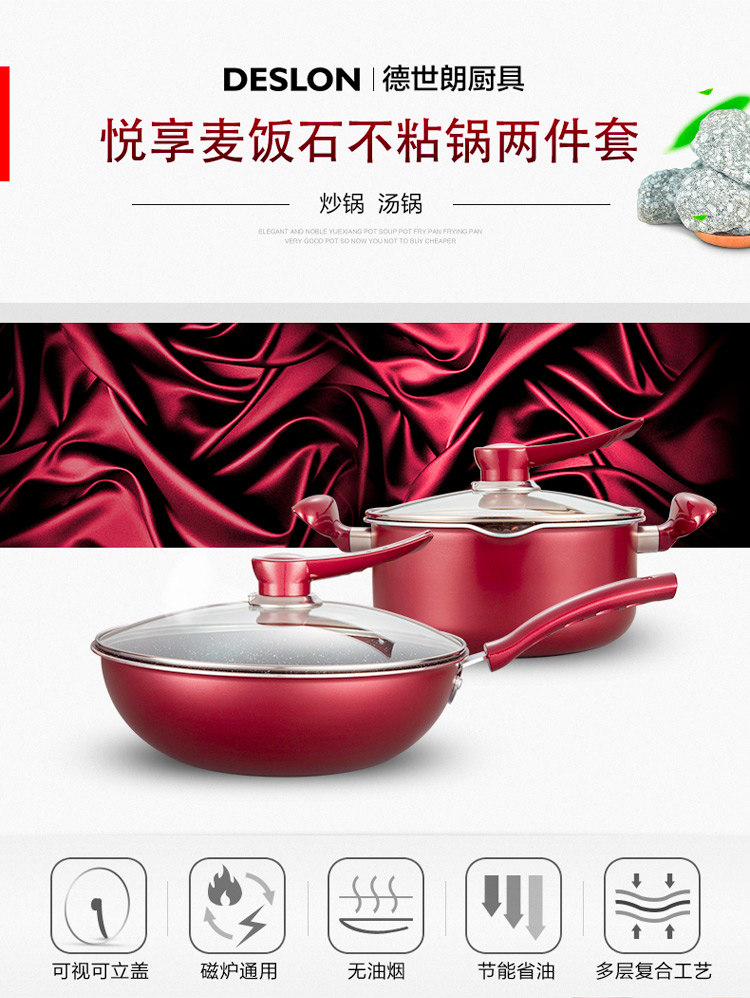 德世朗悦享麦饭石不粘锅两件套DFS-TZ908A 炒锅/汤锅