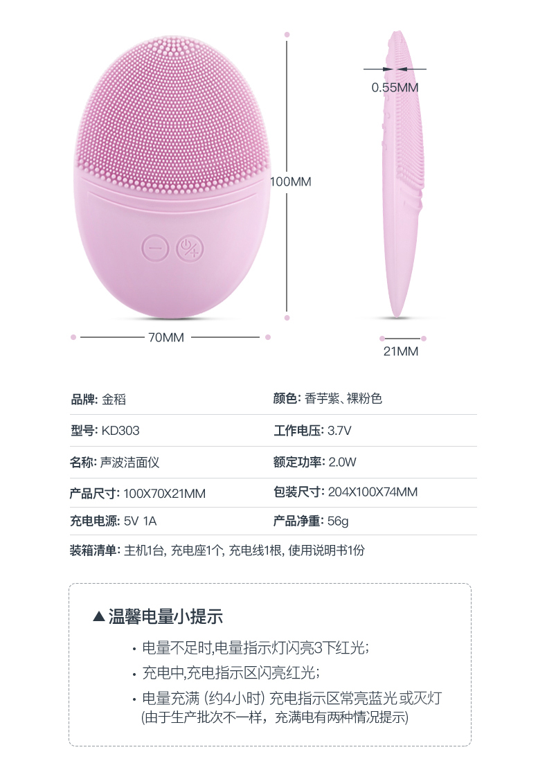 您所在的位置:首页 > 家用电器 >  个护健康 >  美容器 >  金稻洗脸仪电动洗面洁面仪声波毛孔清洁器硅胶刷脸部神器美容仪 KD303 香芋紫