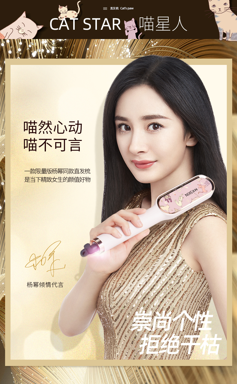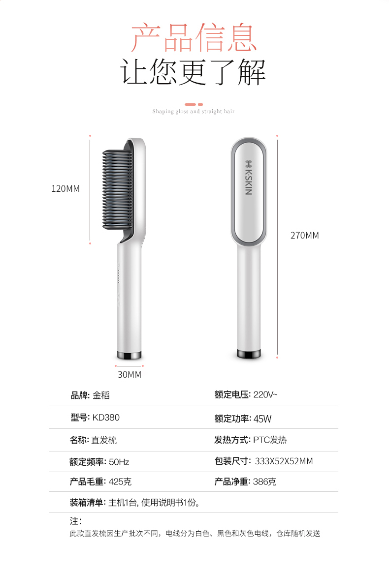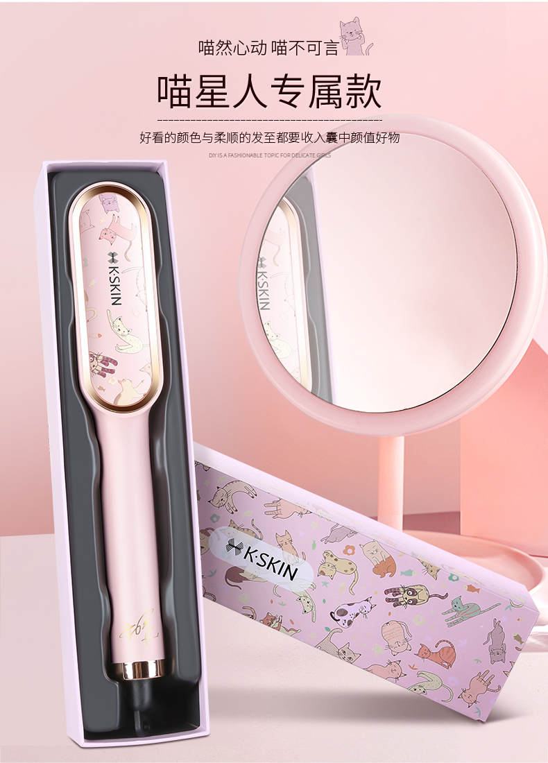 金稻直发梳家用陶瓷直发器卷直两用定型直发板懒人电卷发棒KD380 黑蓝色