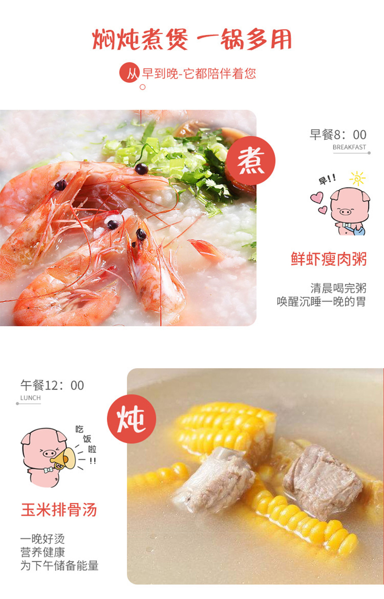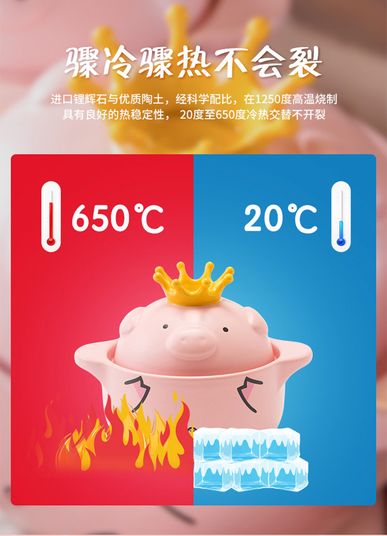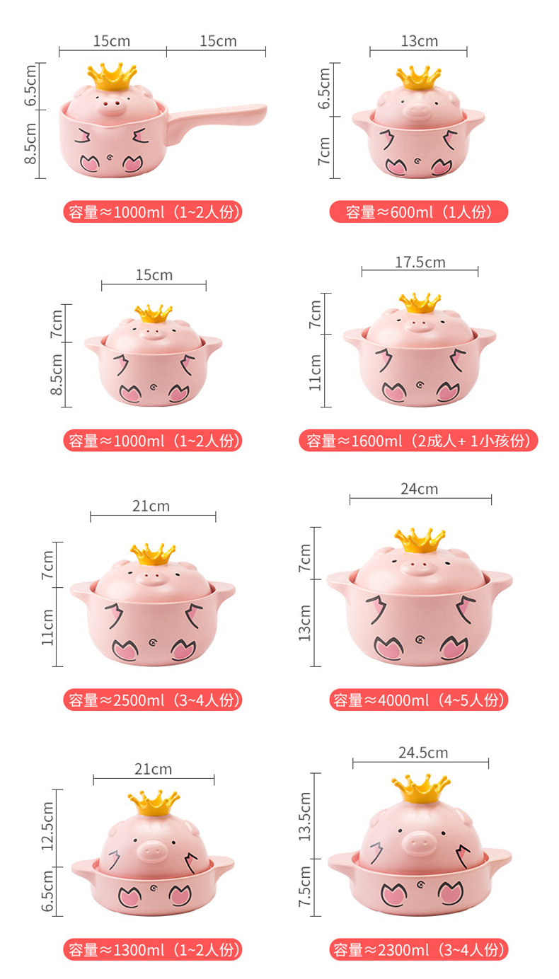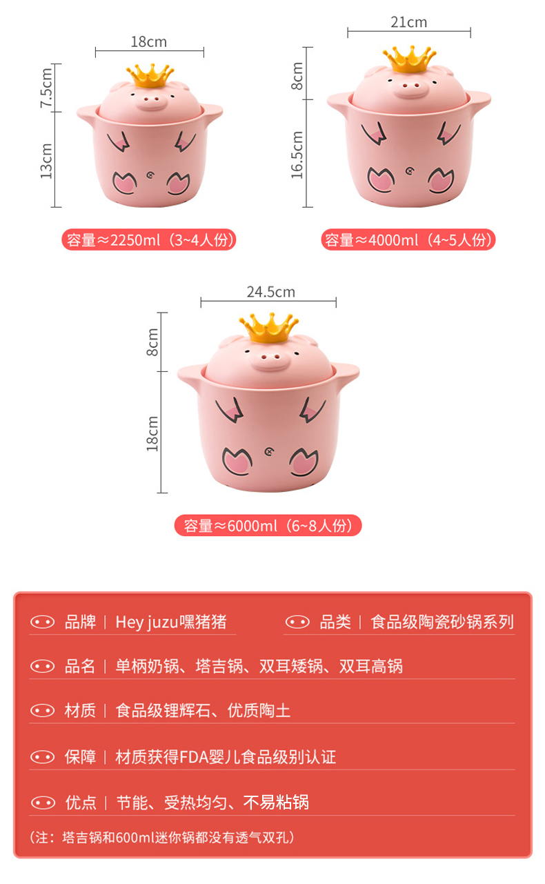 嘿猪猪耐热陶瓷双耳砂锅P800-1-4000ml 网红猪猪锅家用4000ML