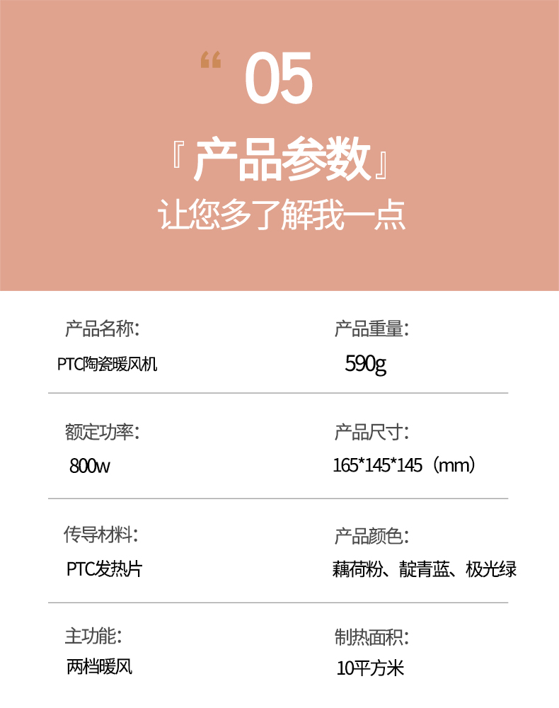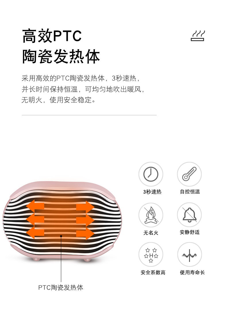敏煌PTC陶瓷暖风机【藕荷粉】*1台