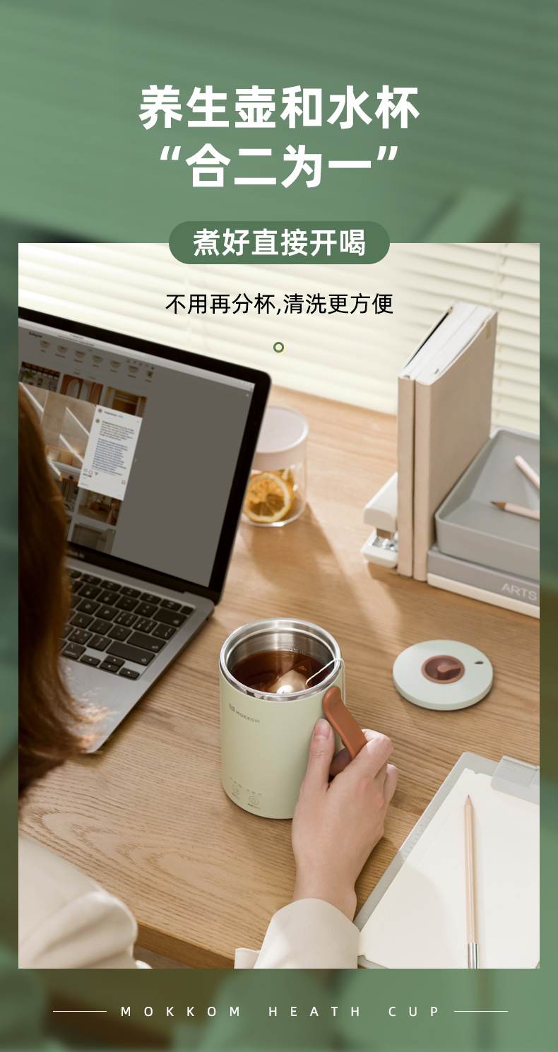 mokkom磨客养生杯多功能办公室迷你便携式电炖煮茶煮粥神器烧水杯 粉色