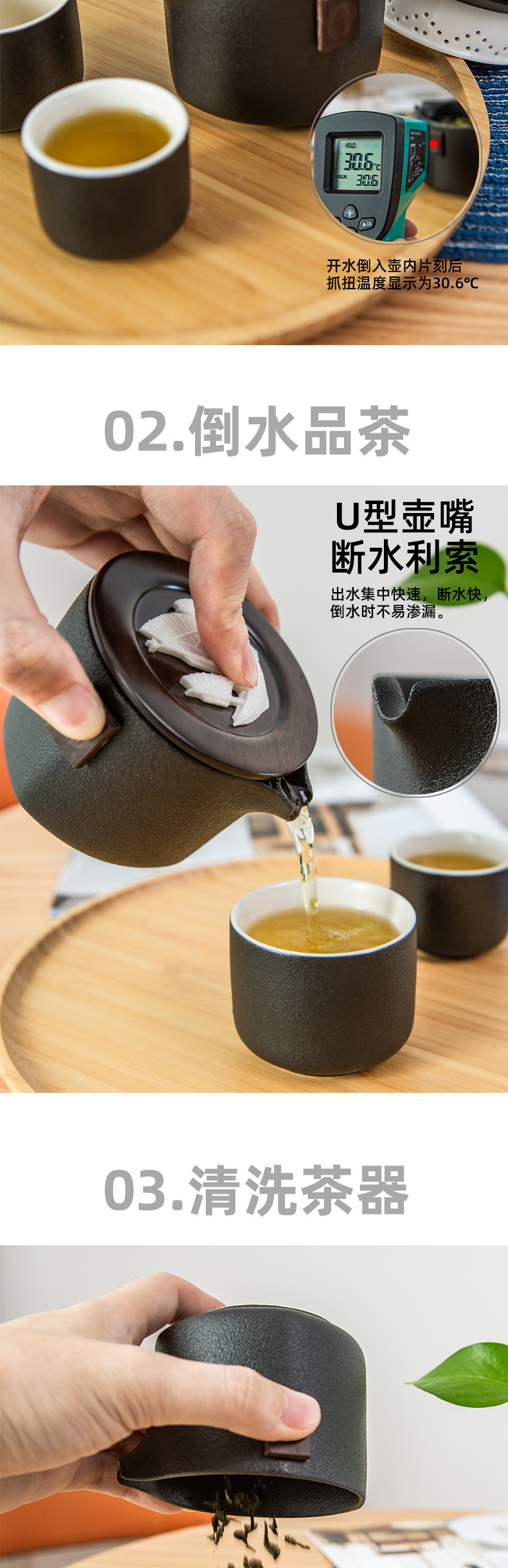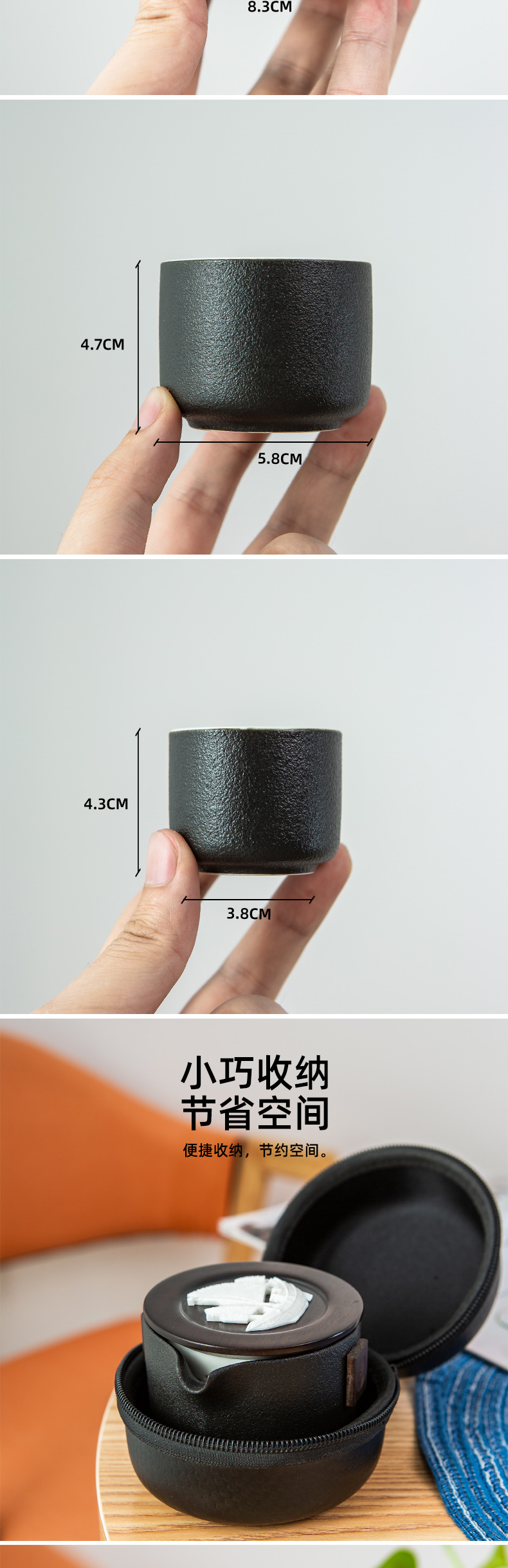 古时候瓷器风铃系列 佛手浮雕千手杯旅行茶具套装 黑色