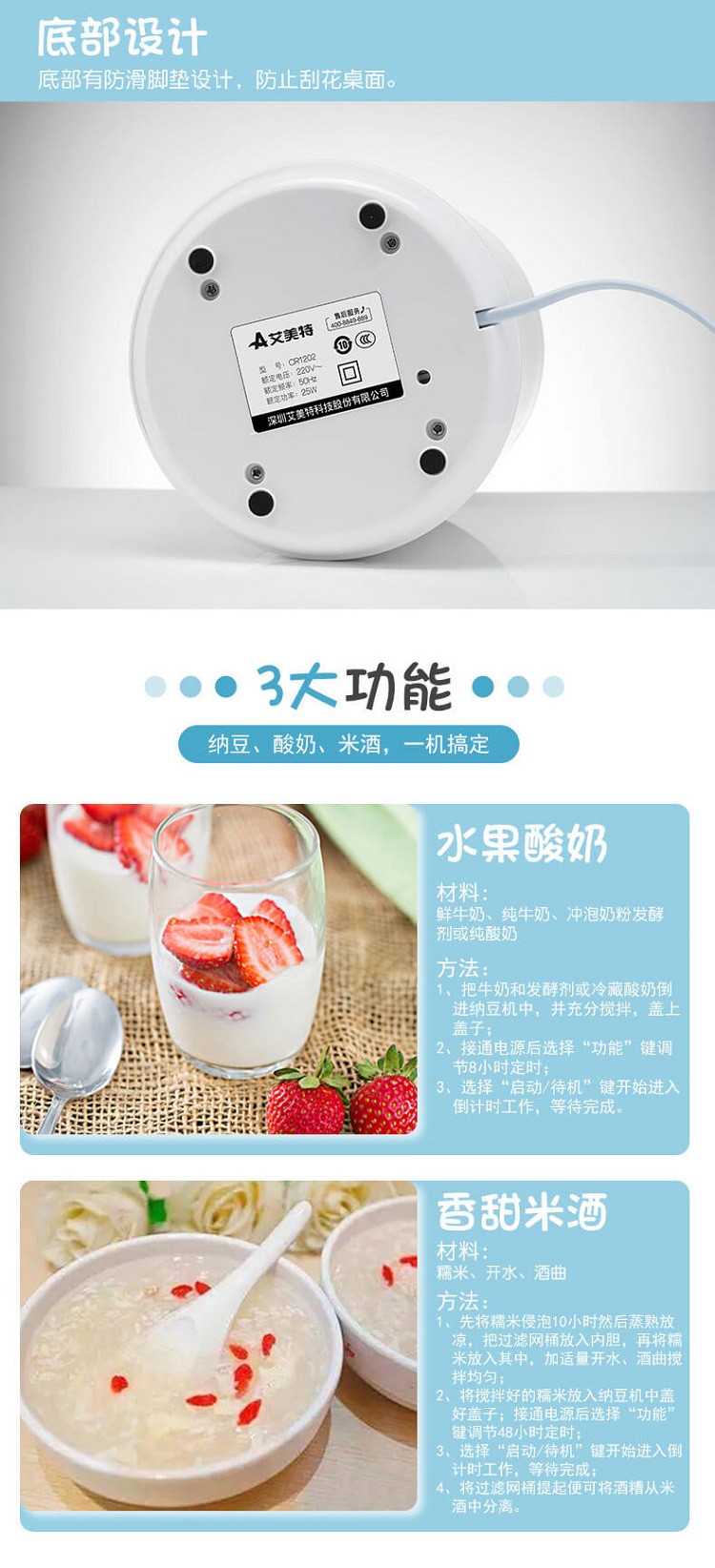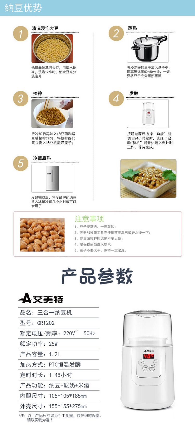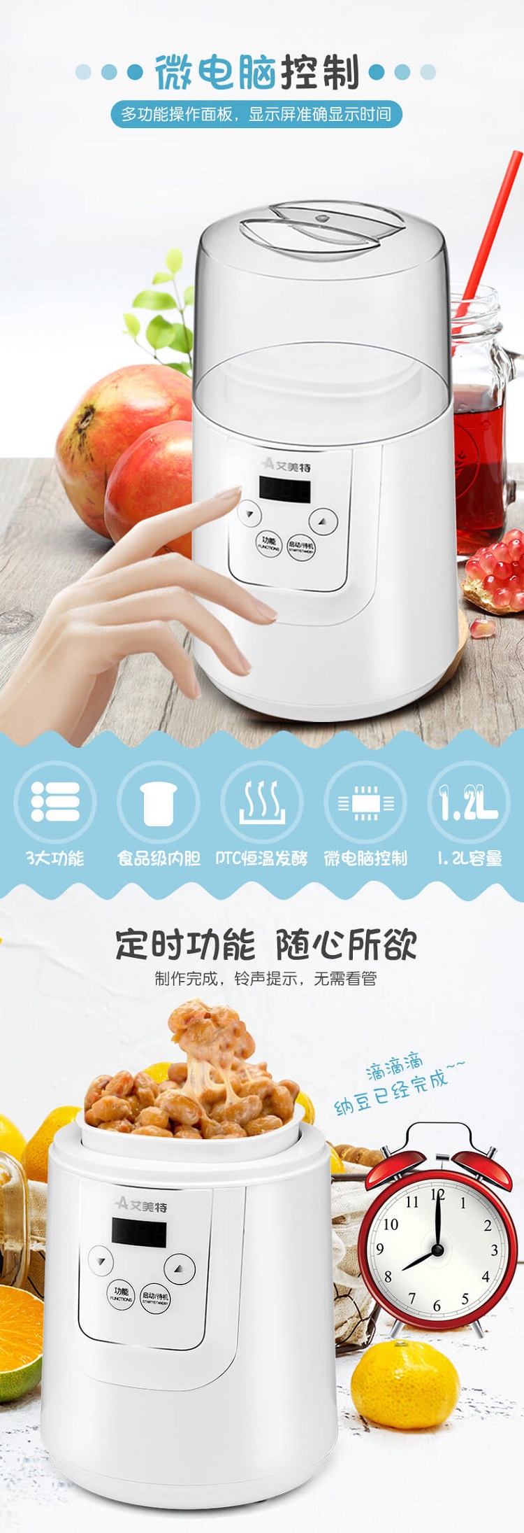 艾美特 三合一酸奶机纳豆机 CR1202