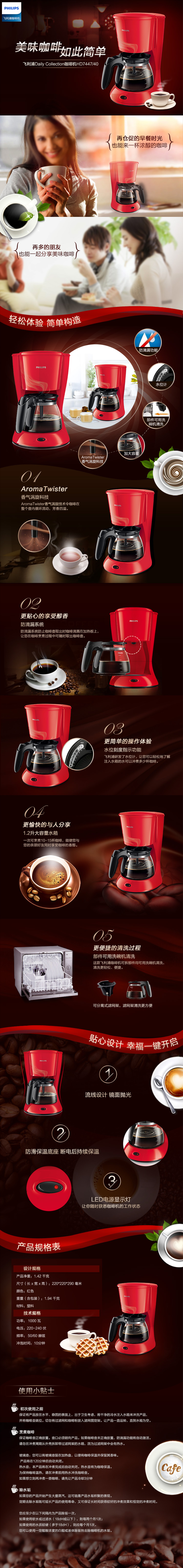 飞利浦(PHILIPS)咖啡机 家用全自动 滴漏式咖啡壶 美式意式滴滤式HD7447/40