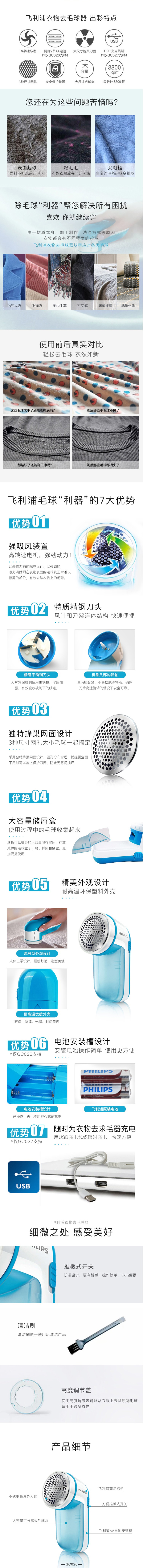 飞利浦(PHILIPS)毛球修剪器去球器剃毛球器衣服去除剪毛器电池式GC026/00
