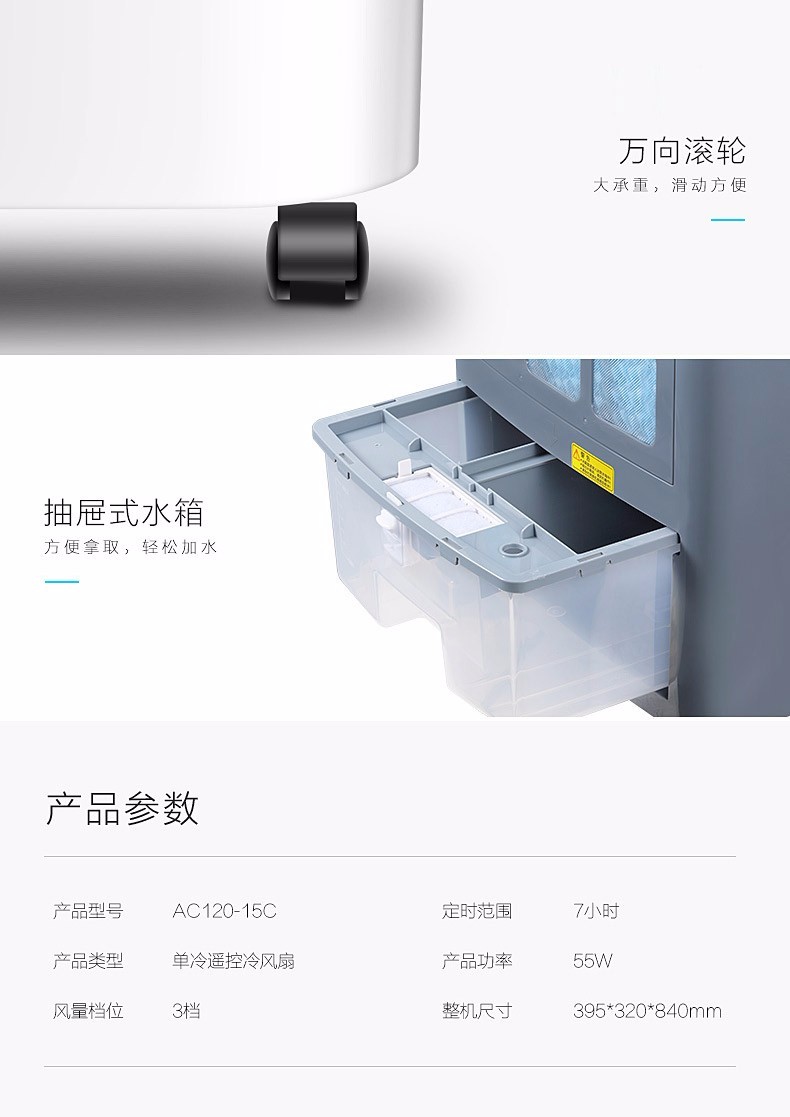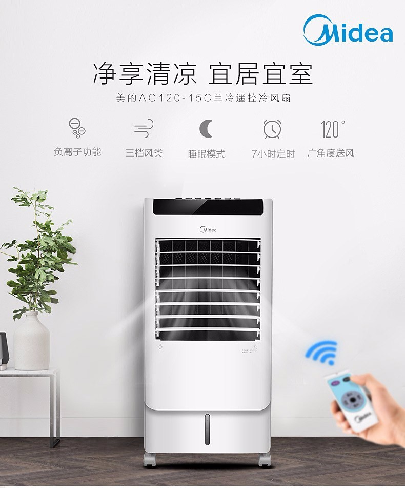 美的(Midea)空调扇家用遥控加湿冷风扇冷风机 负离子净化冷气机冷气扇 5L水箱 AC120-15C