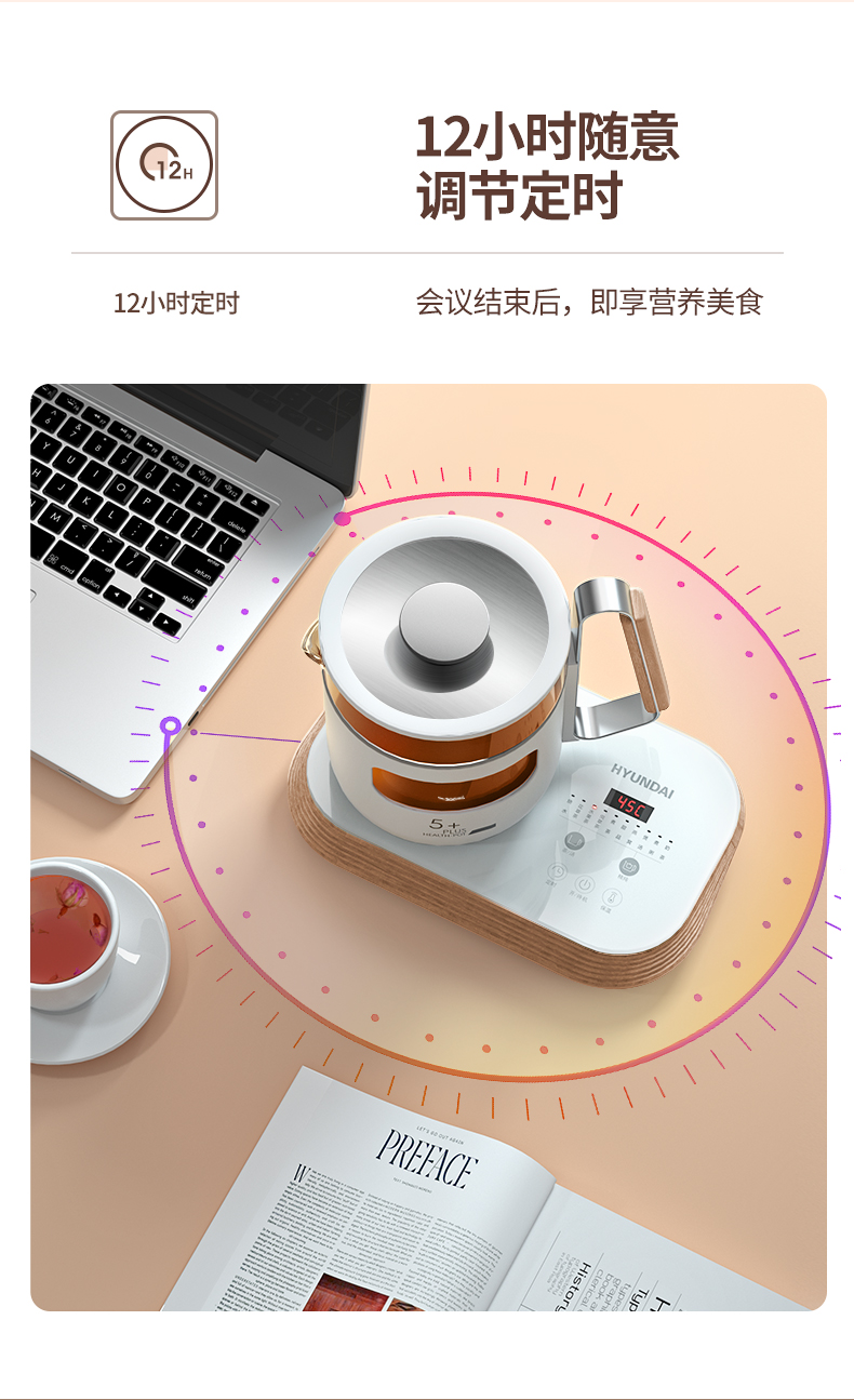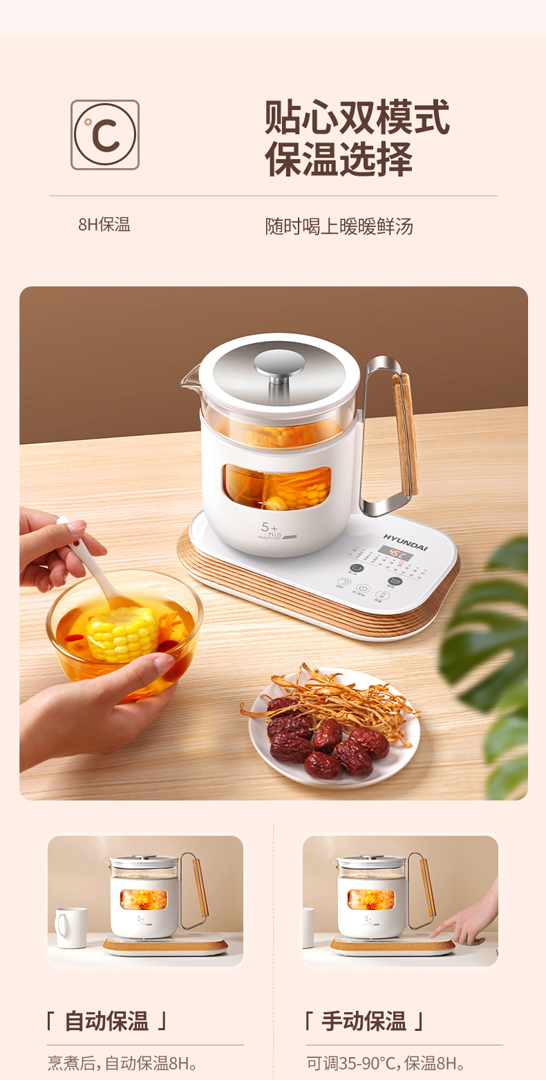 韩国现代(HYUNDAI)迷你家用养生壶煎药壶办公室热水壶
