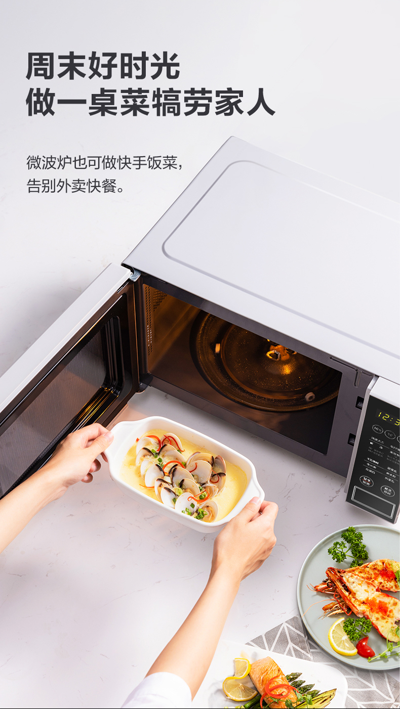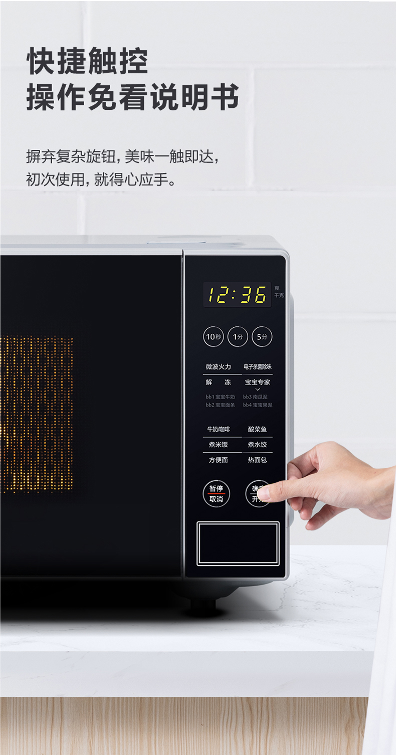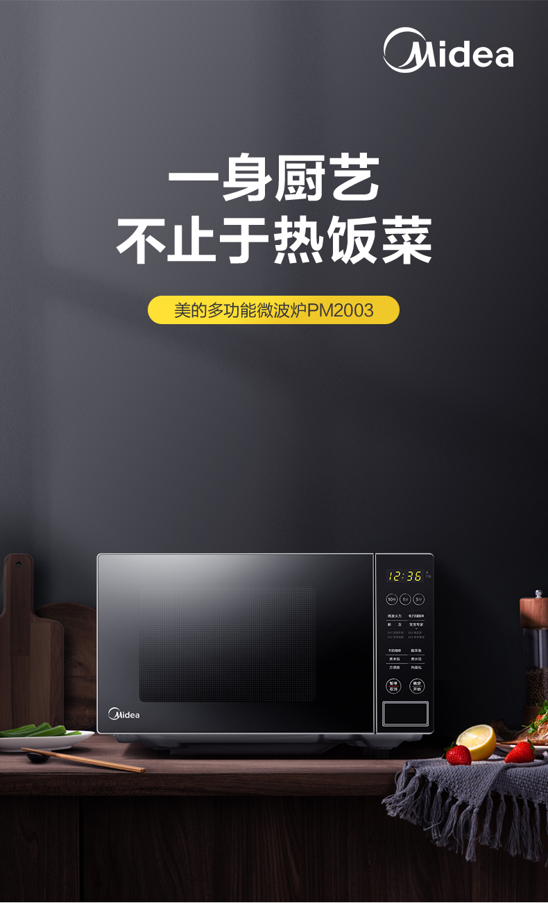 美的(Midea)快捷微波炉 微电脑操控 智能蒸煮菜单 20升平板加热PM2003