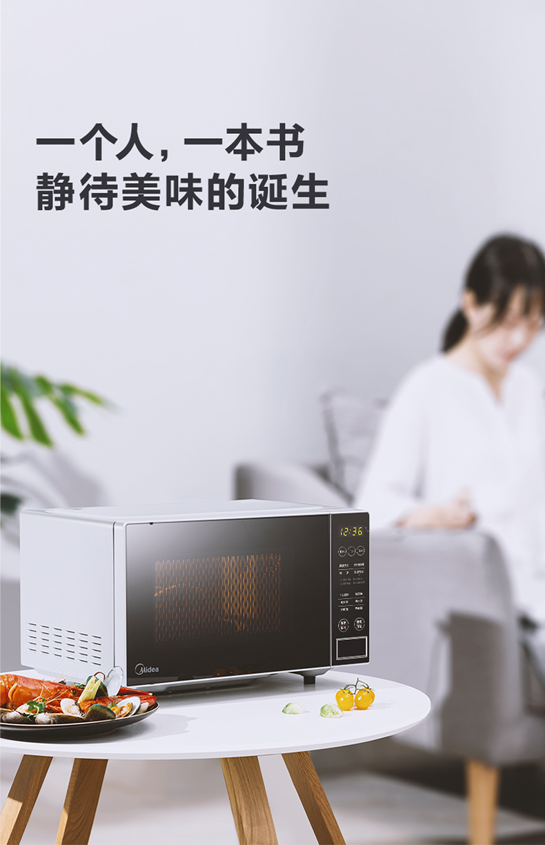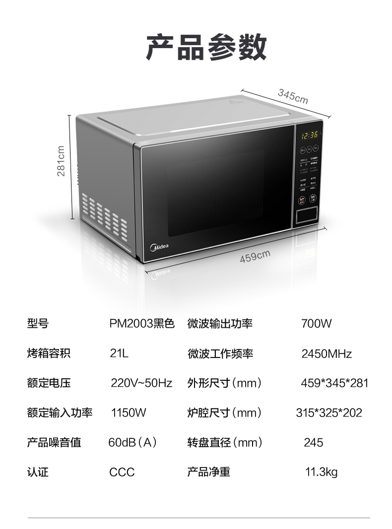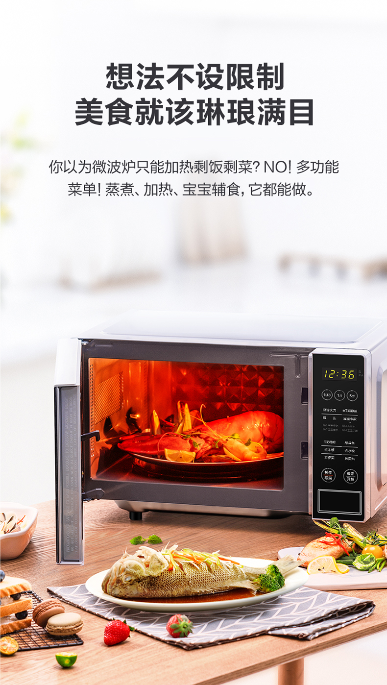 美的(Midea)快捷微波炉 微电脑操控 智能蒸煮菜单 20升平板加热PM2003