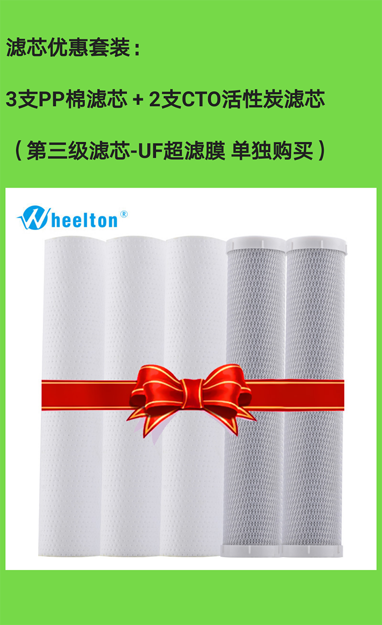 【广州优选】惠尔顿(WHEELTON) WHT-S1净水器 3支PP棉滤芯 加 2支CTO活性炭 滤芯套装