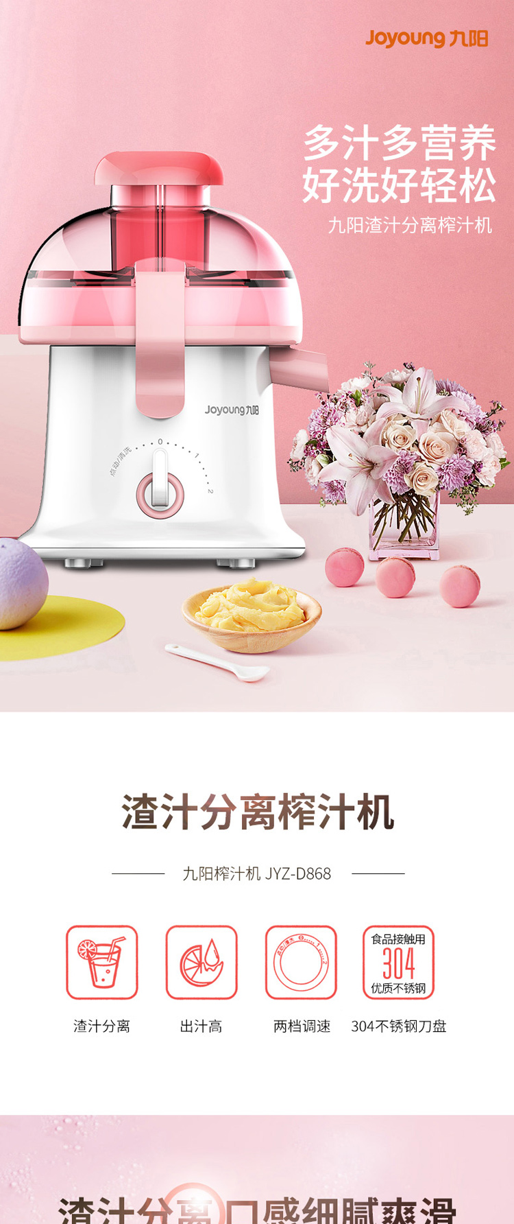 九阳(Joyoung)榨汁机婴儿辅食果汁机JYZ-D868