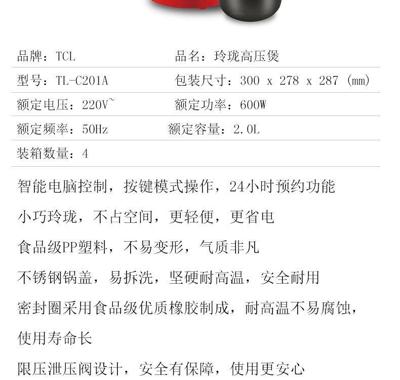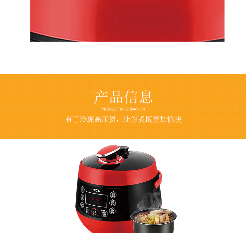 您所在的位置:首页 > 家用电器 >  厨房小电 >  电压力锅 >  TCL玲珑高压煲TL-C201A
