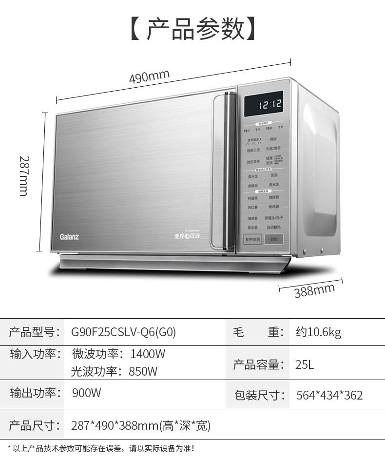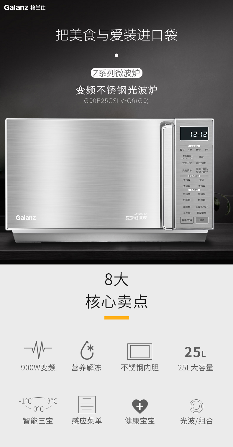 格兰仕(Galanz)家用变频光波 微波炉不锈钢G90F25CSLV-Q6(G0)