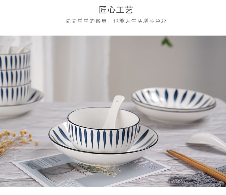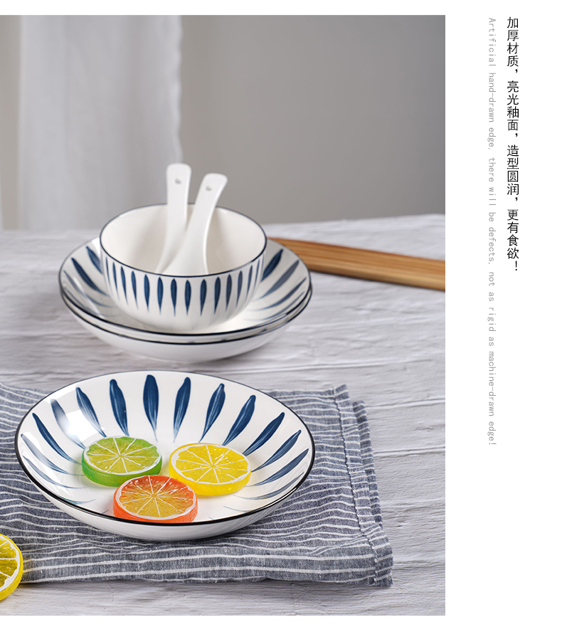 【网红同款】日式和风釉下彩16件套(4碗+4碟+4筷子+4勺子)餐具(千叶草)