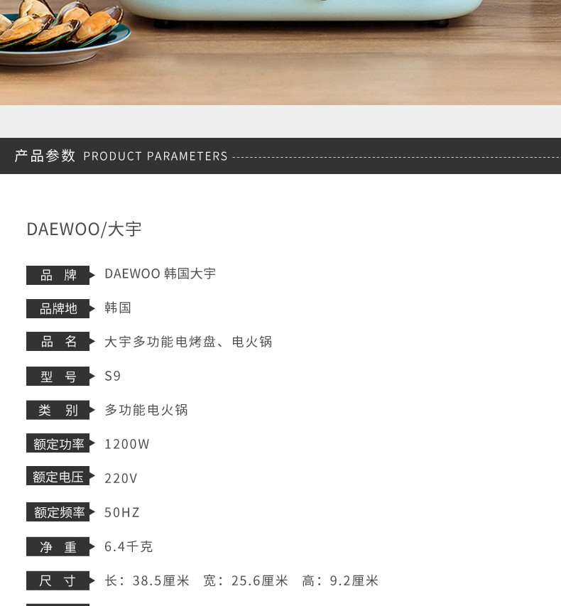 您所在的位置:首页 > 家用电器 >  厨房小电 >  电烧烤炉 >  大宇 料理蒸汽锅 S9 蓝色