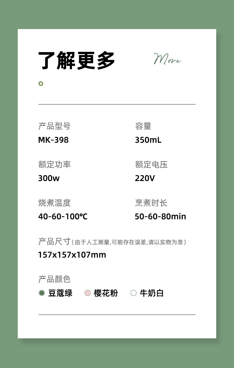 您所在的位置:首页 > 家用电器 >  厨房小电 >  其它厨房电器 >  MOKKOM 多功能桌面养生杯 豆蔻绿