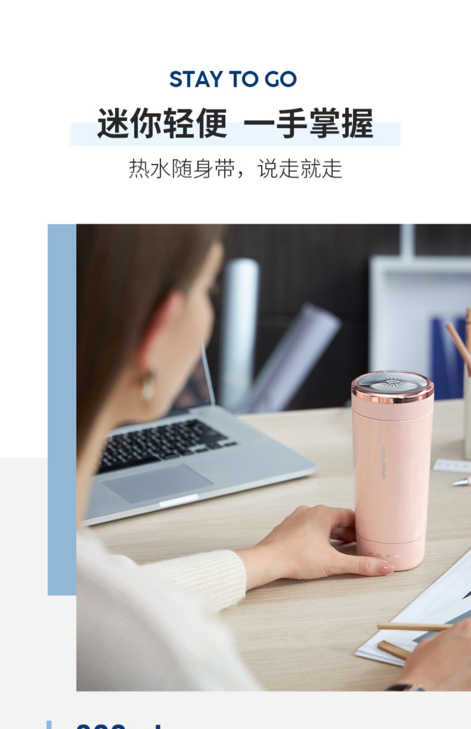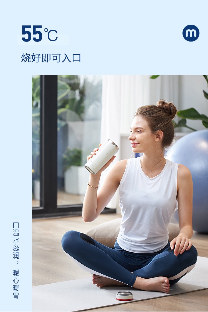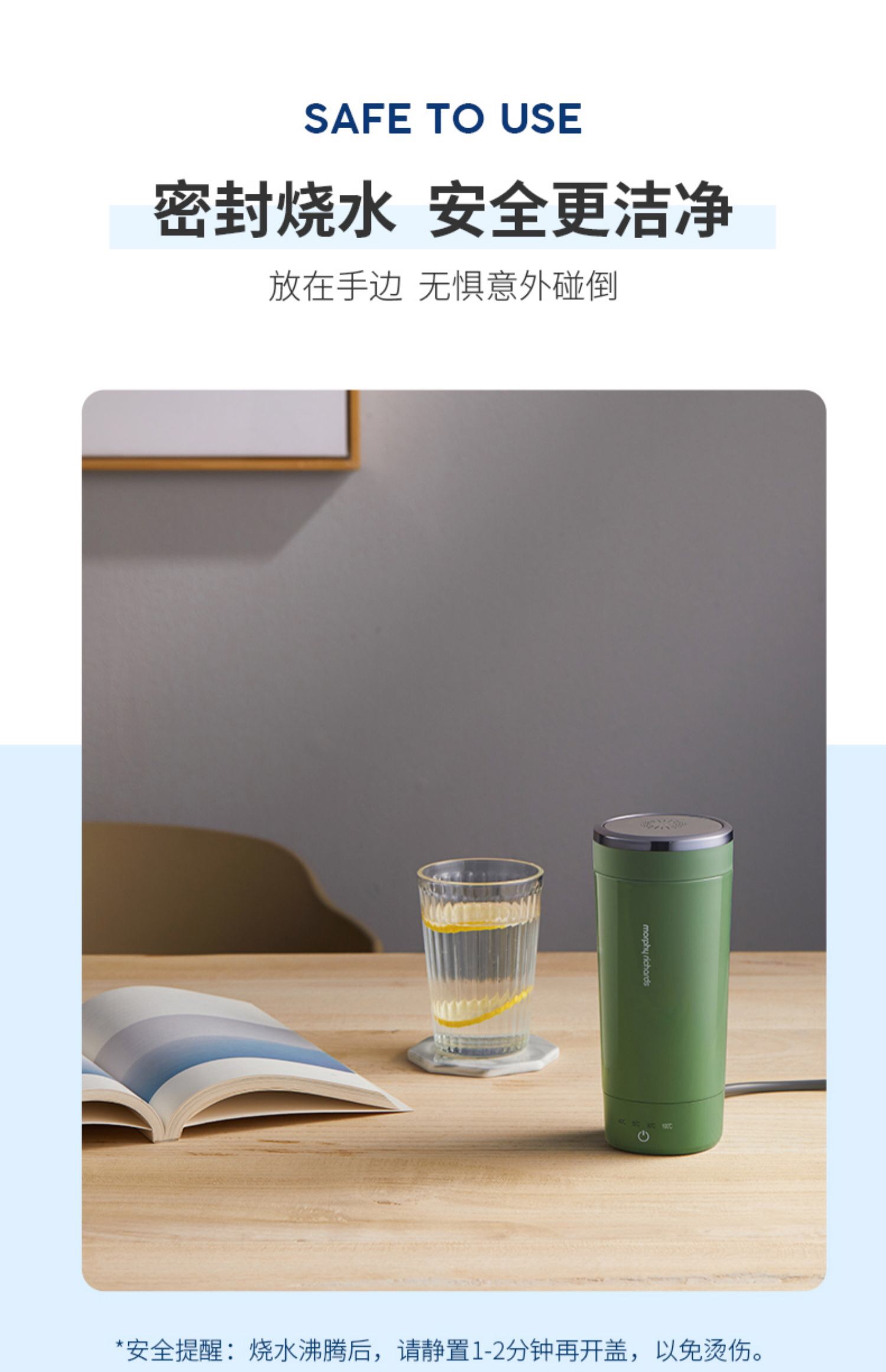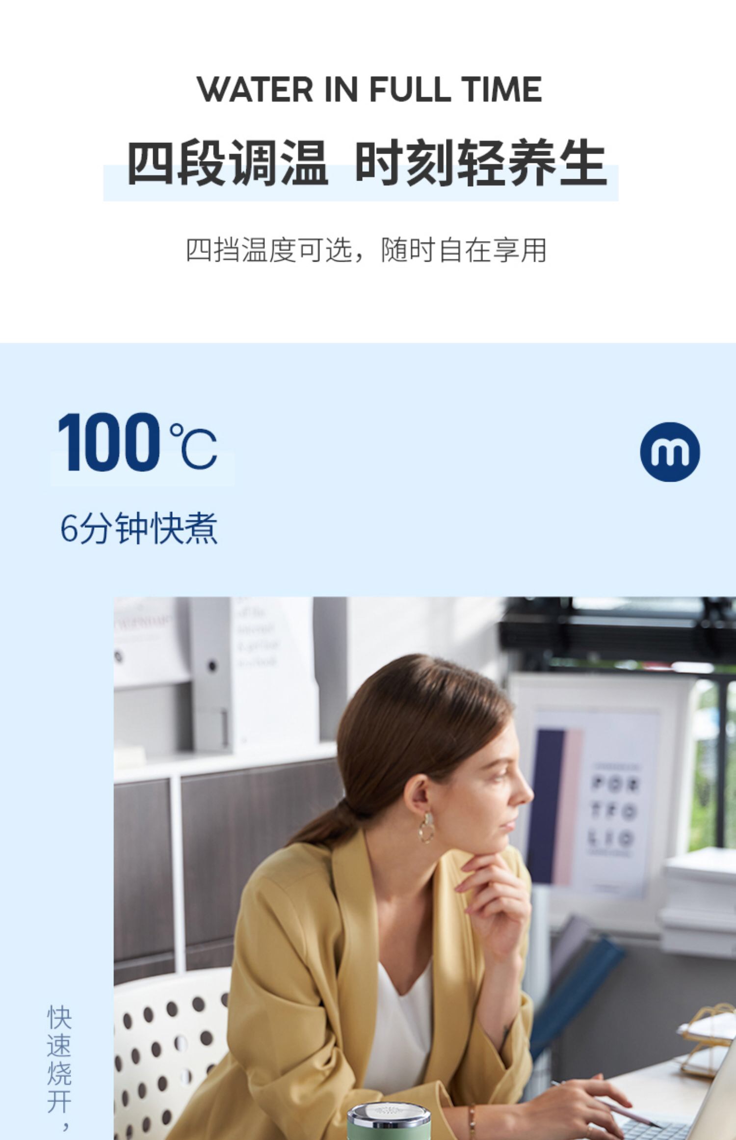 摩飞电热烧水壶便携式轻养杯自动保温随身小型旅行养生加热烧水杯MR6060椰奶白