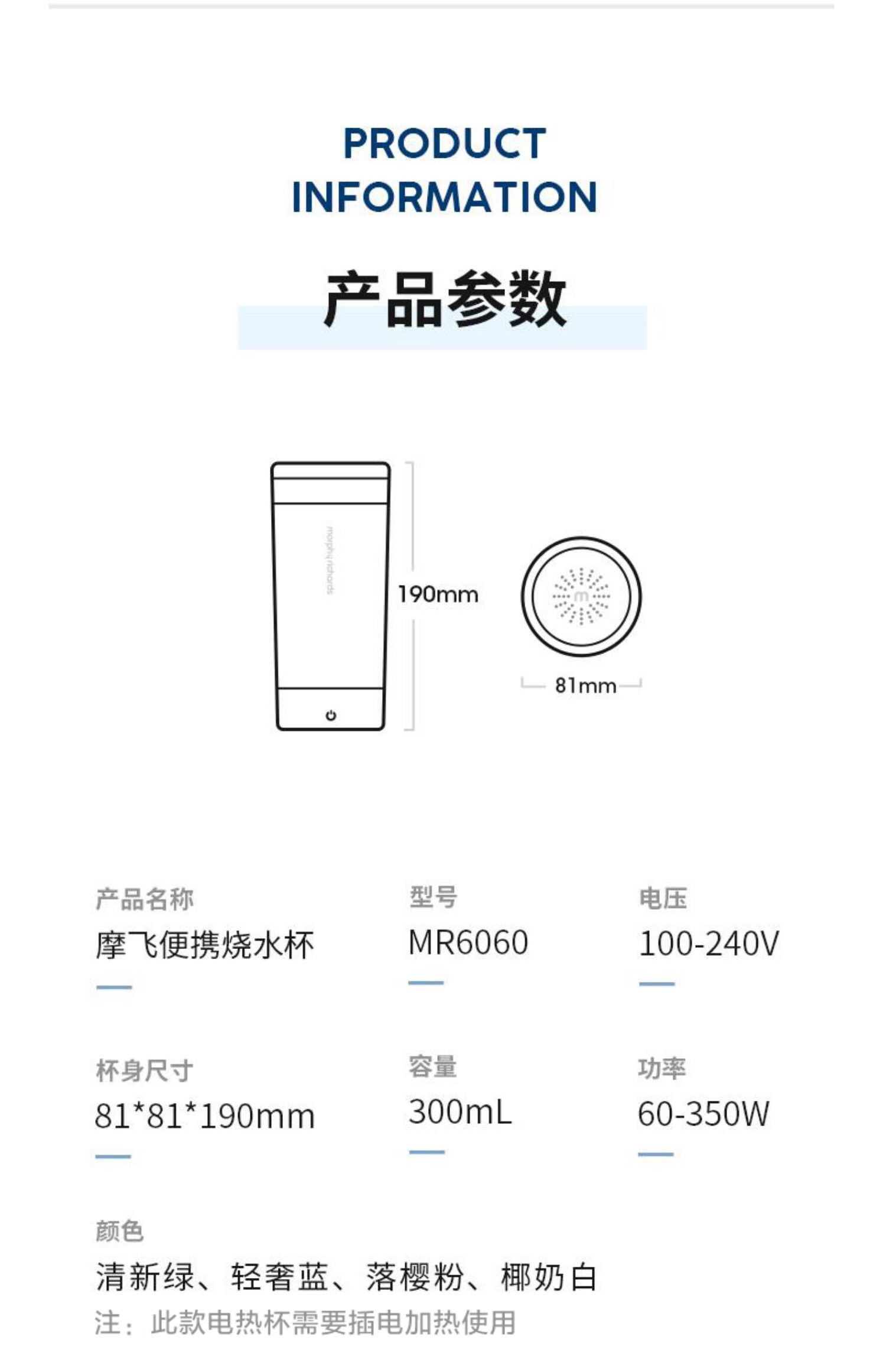 您所在的位置:首页 > 家用电器 >  厨房小电 >  电水壶/热水瓶 >  摩飞电热烧水壶便携式轻养杯自动保温随身小型旅行养生加热烧水杯MR6060椰奶白