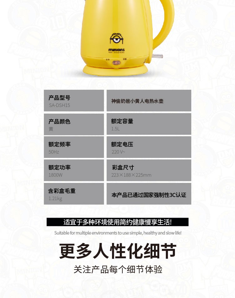 小黄人神偷奶爸系列电热水壶 SA-DSH15