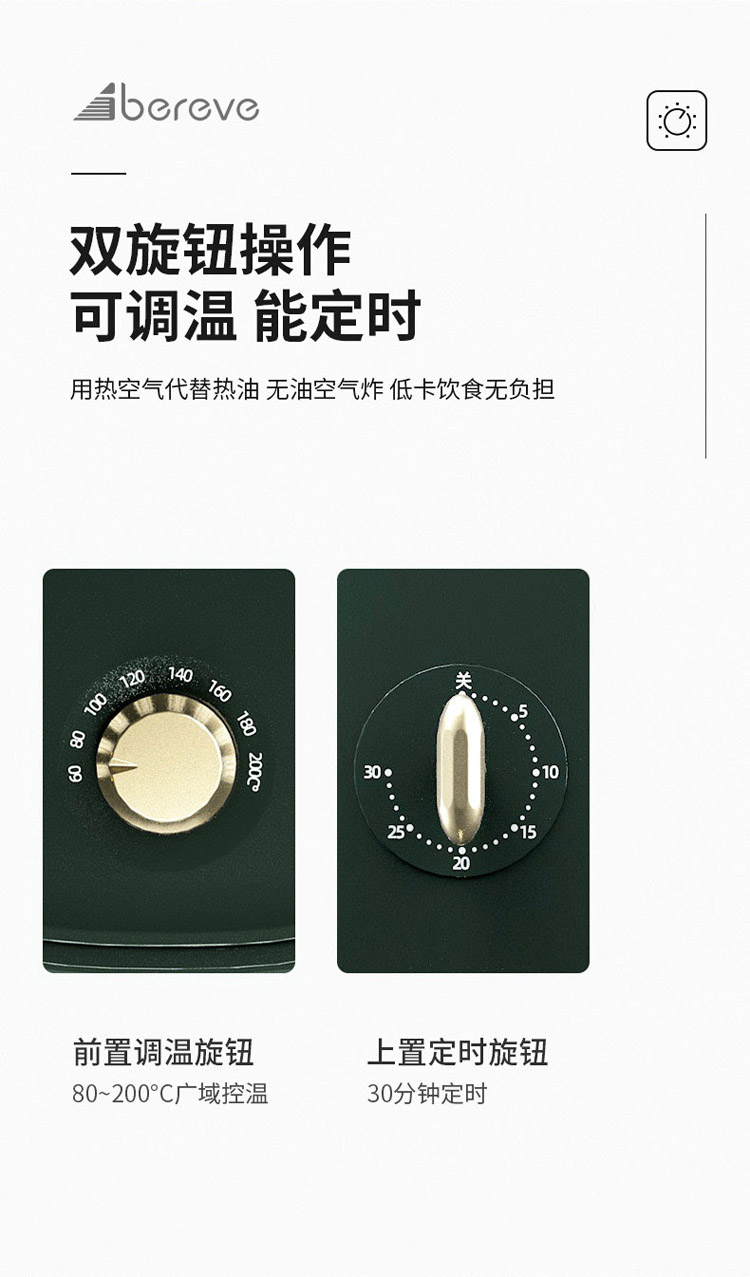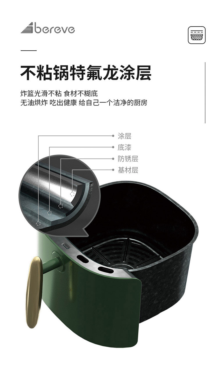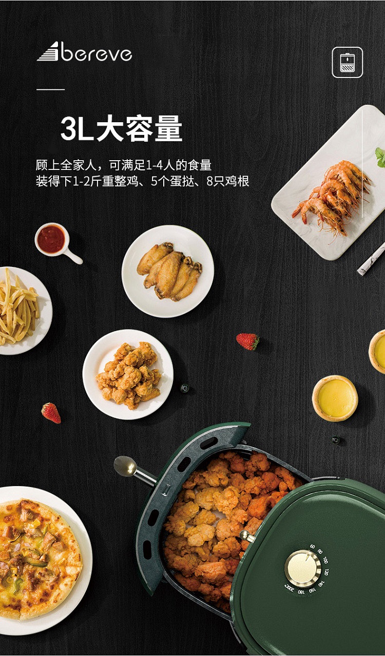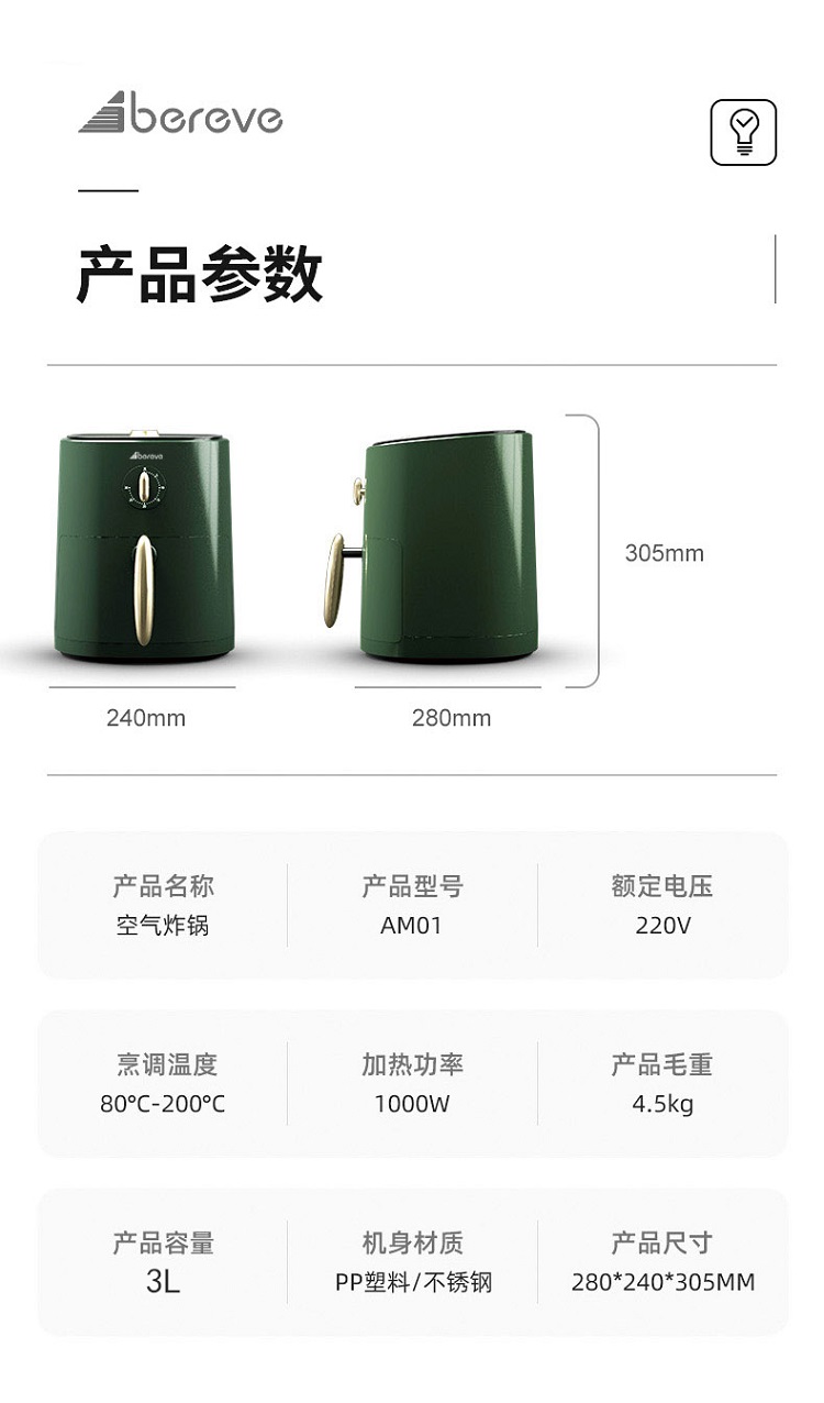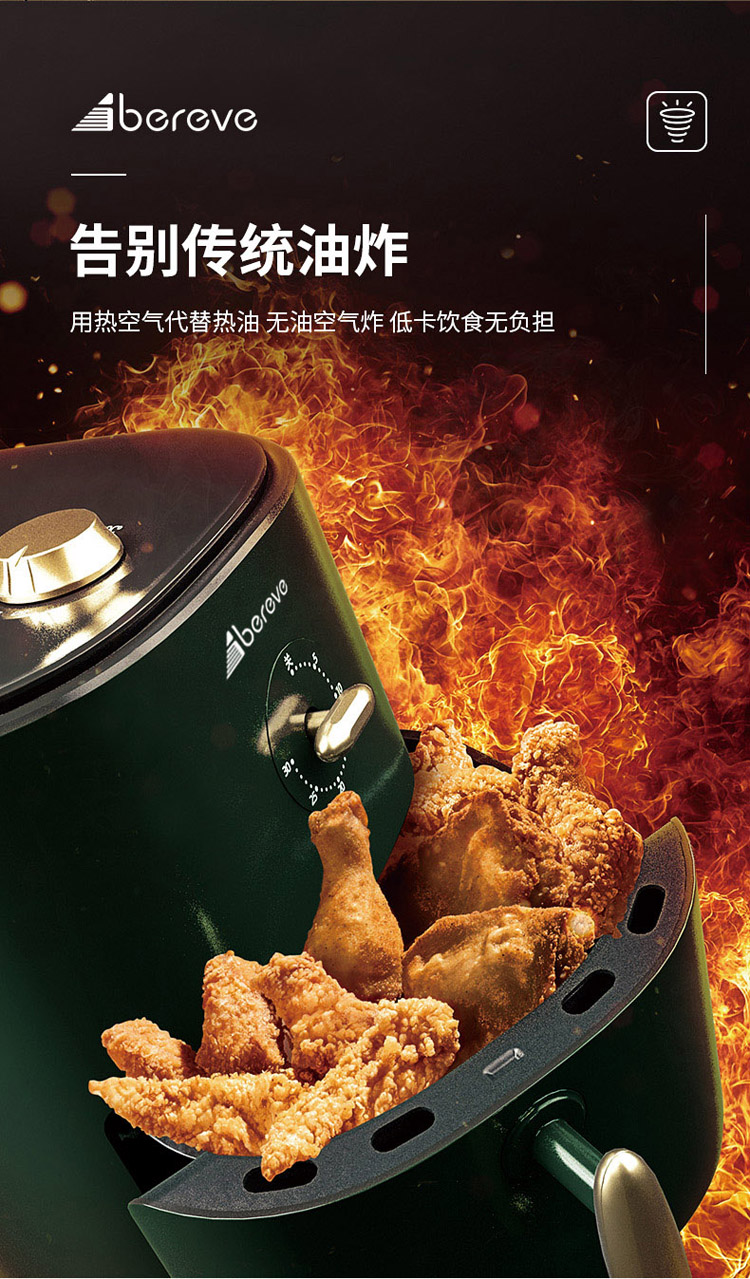 艾贝丽空气炸锅3L AM01 墨绿色