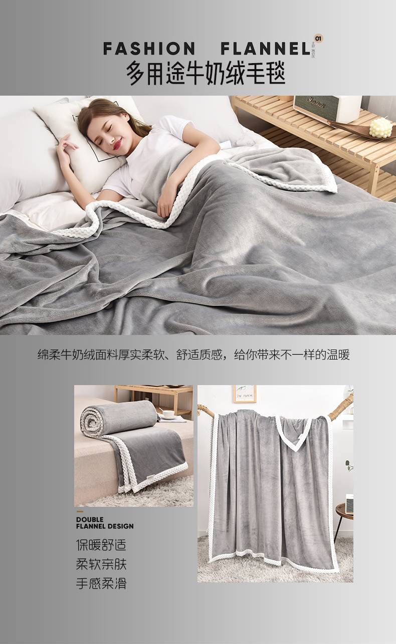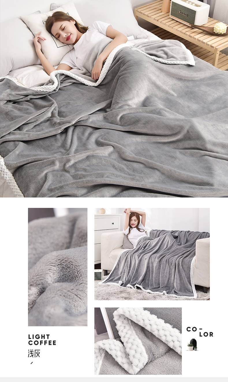 乐扣乐扣牛奶绒休闲四季盖毯-浅灰-150*200-SH-GT8982