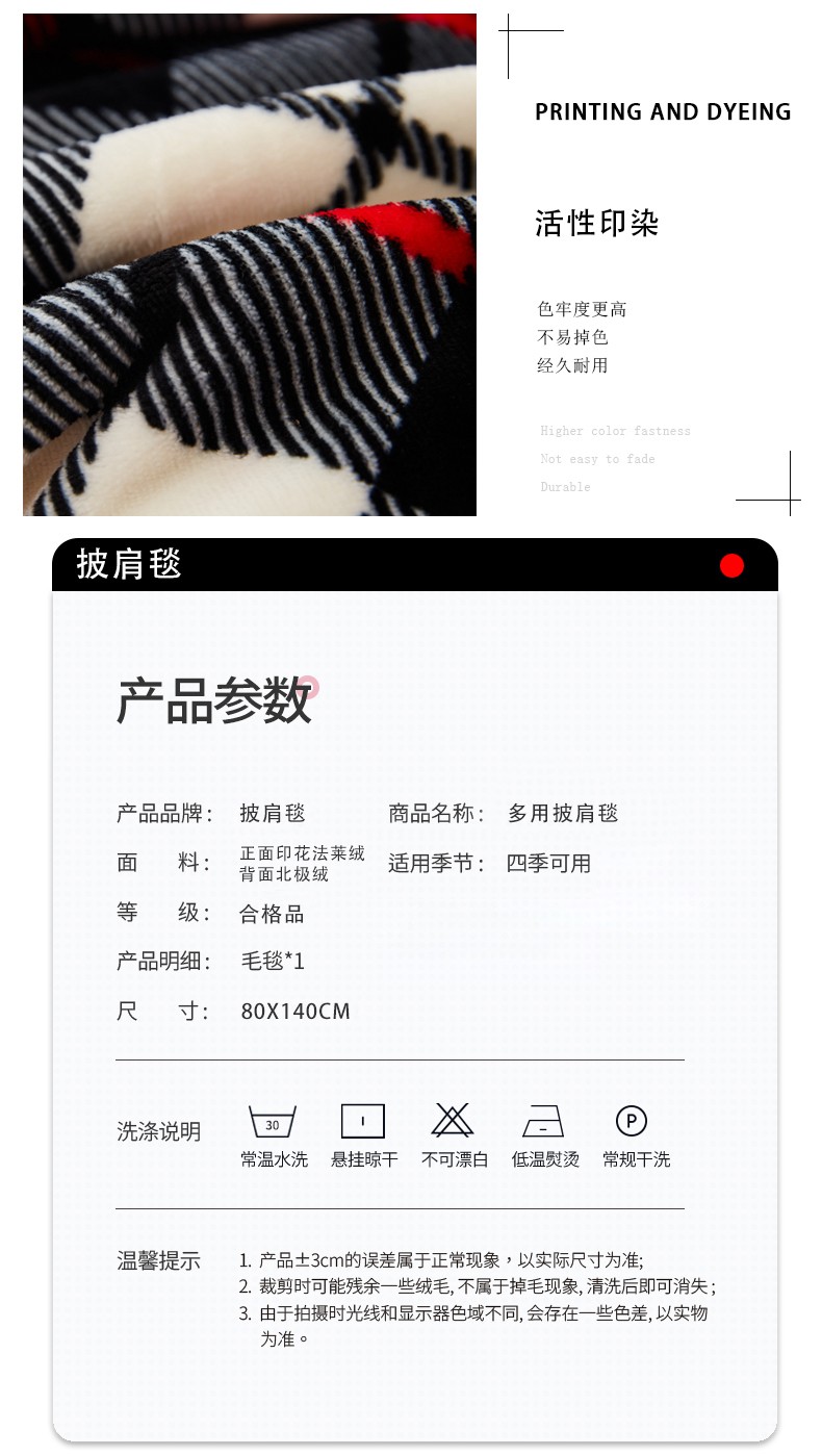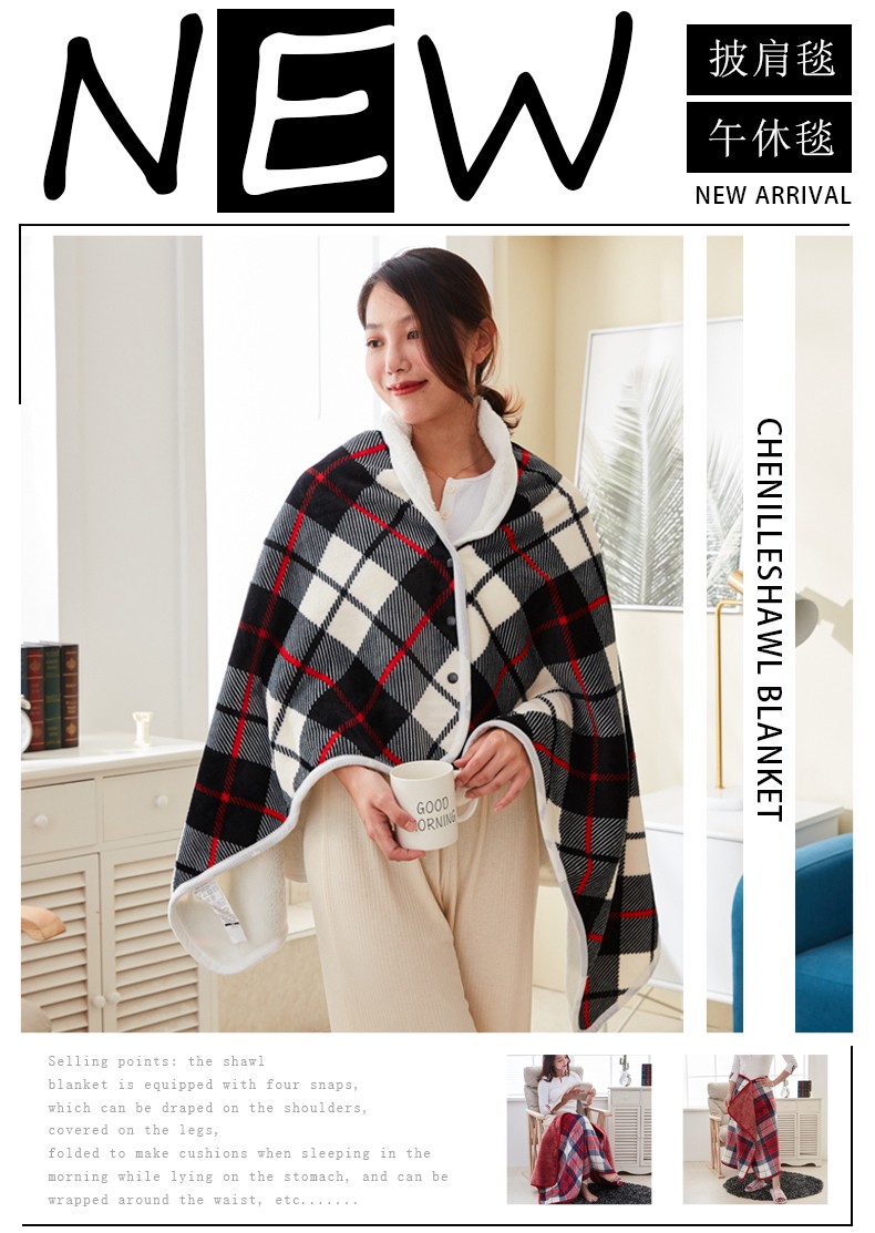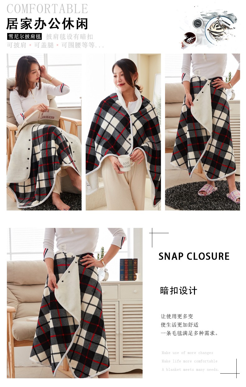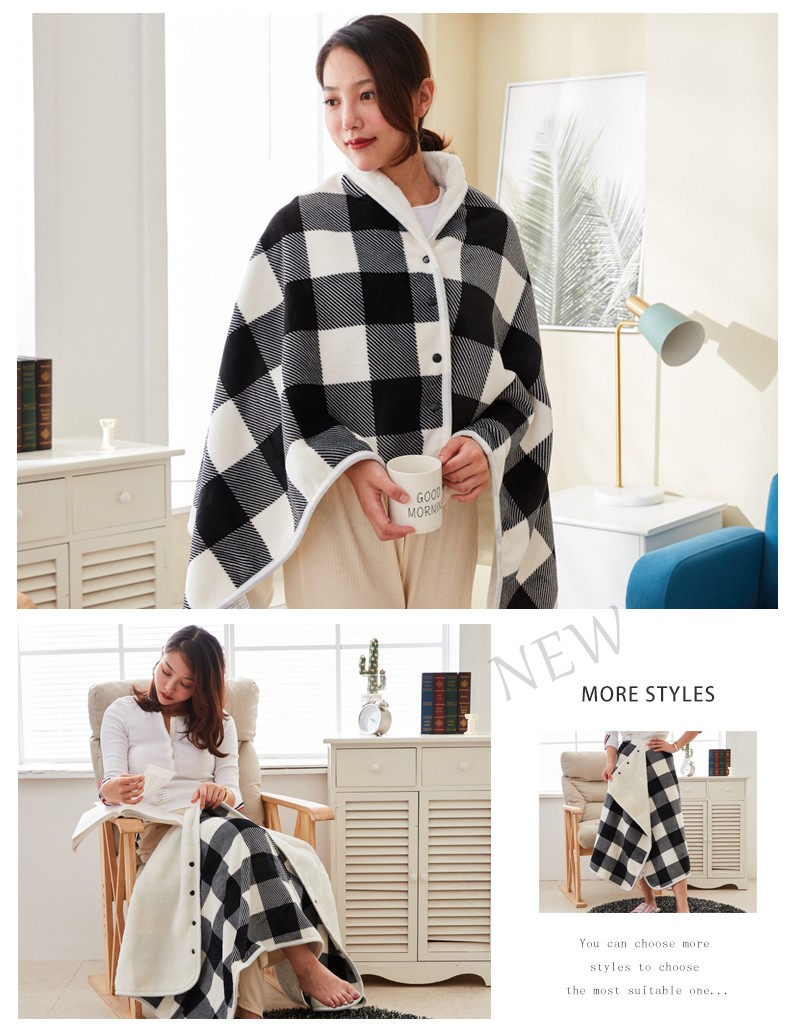 乐扣乐扣多功能披肩毯-黑白细格-80*140cm-SH-GT8982