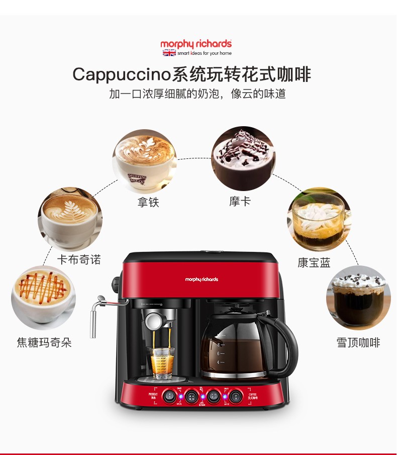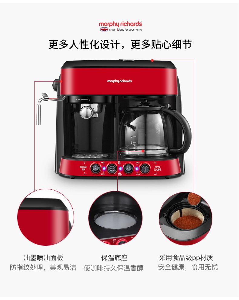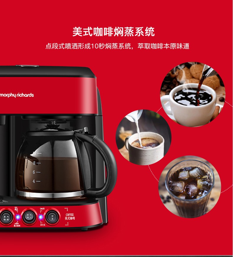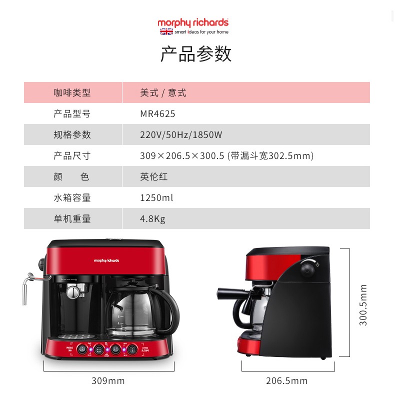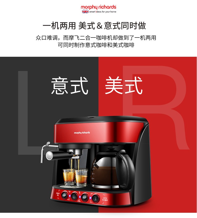 摩飞电器(MORPHY RICHARDS)家用美式意式二合一咖啡机泵压滴漏式MR4625