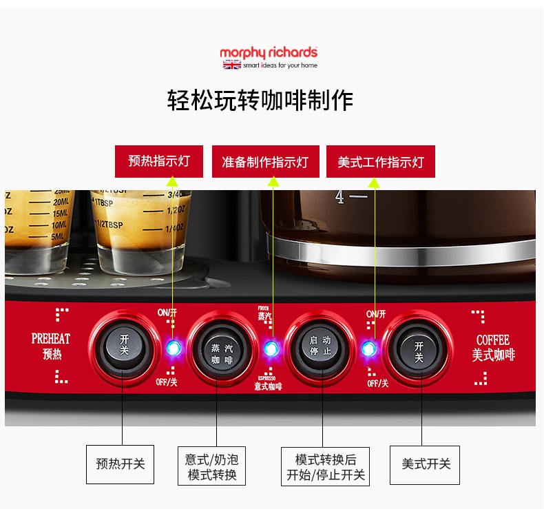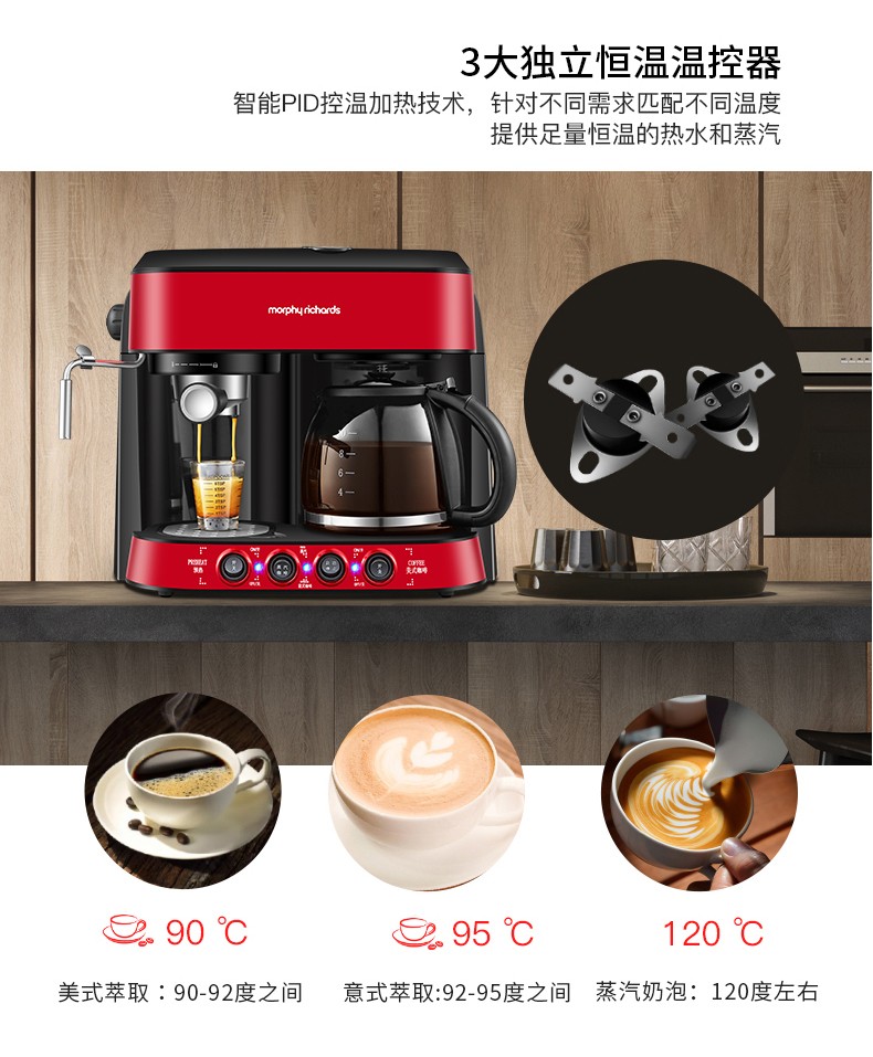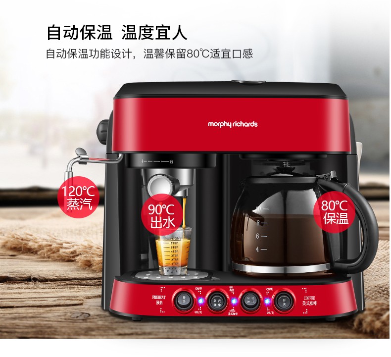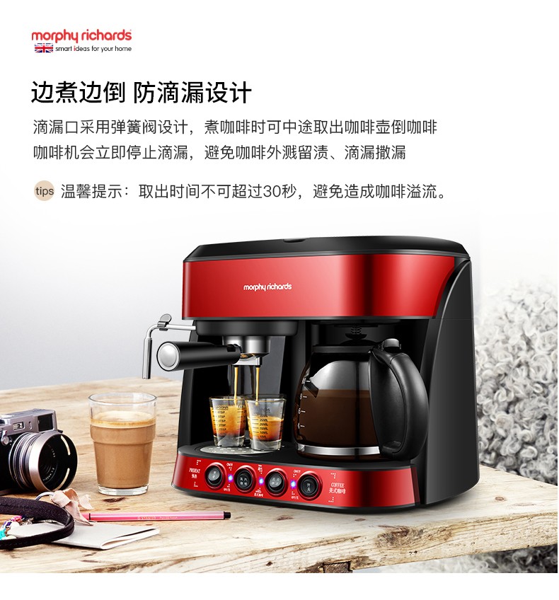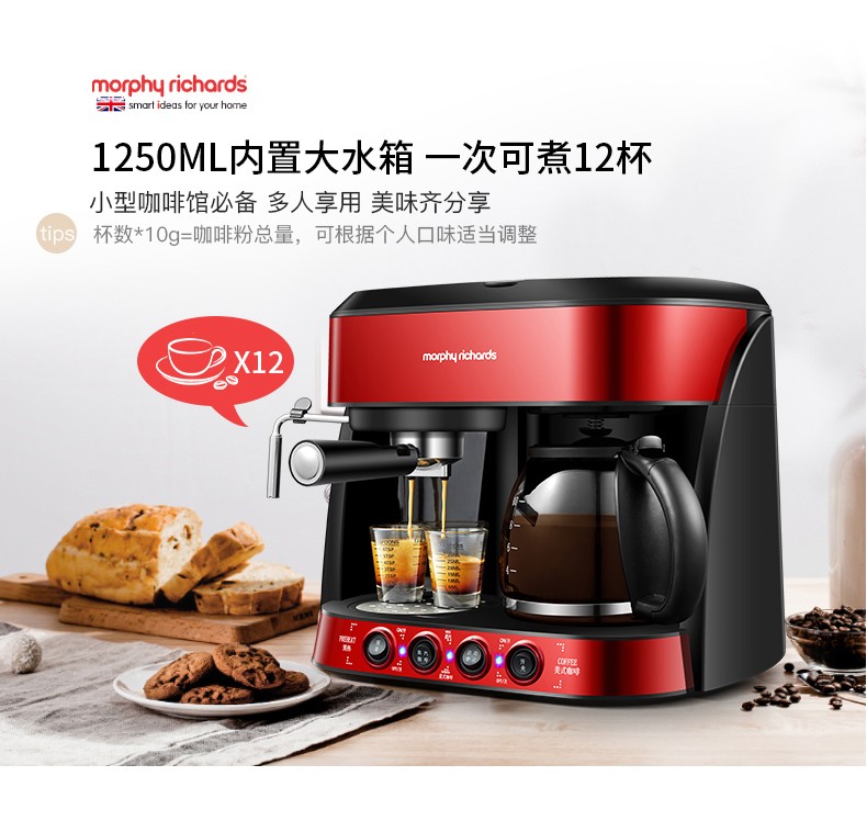 摩飞电器(MORPHY RICHARDS)家用美式意式二合一咖啡机泵压滴漏式MR4625