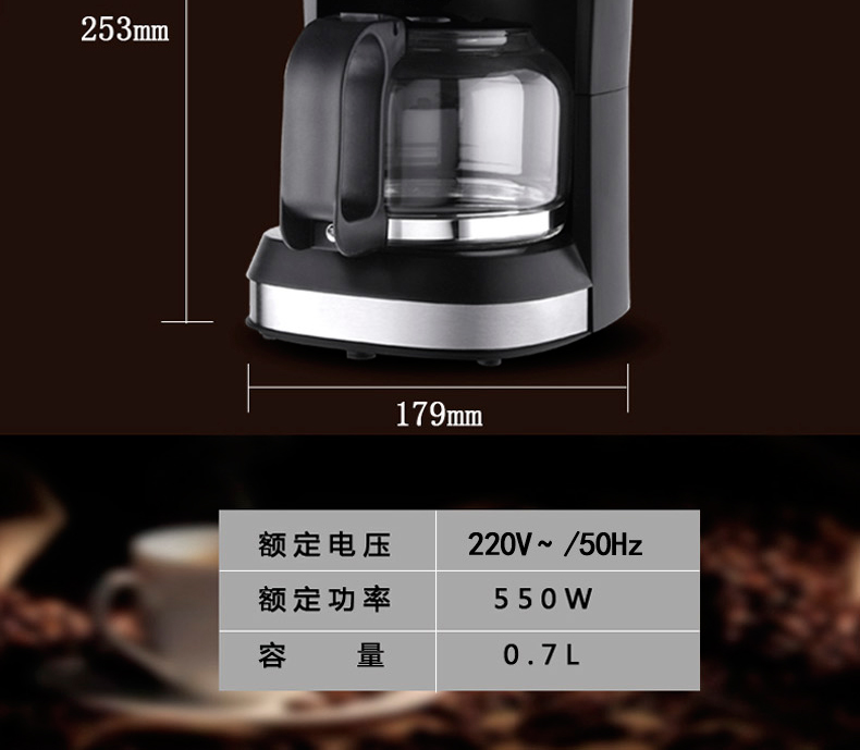 【授权商品】ACA/北美电器多功能咖啡机ALY-KF070D咖啡机700ML