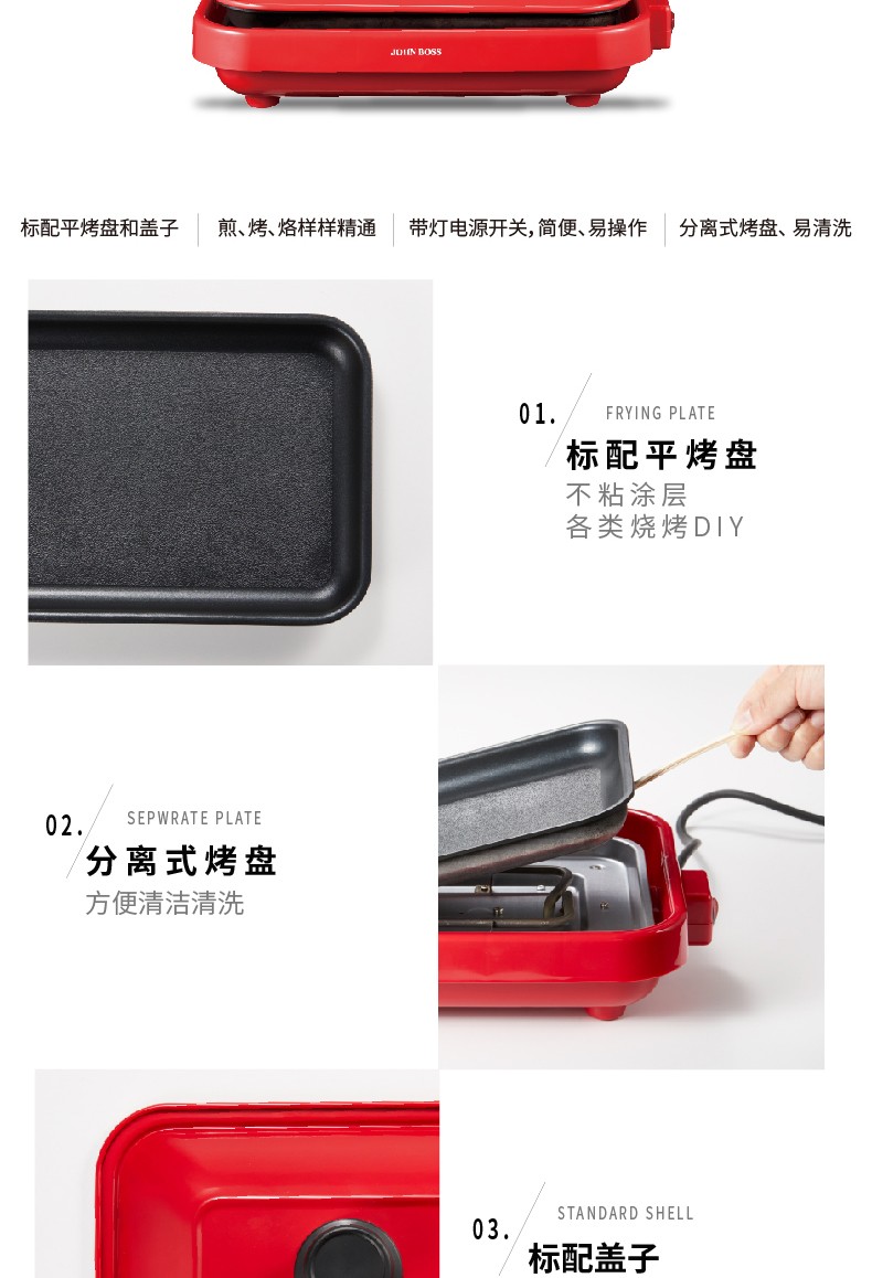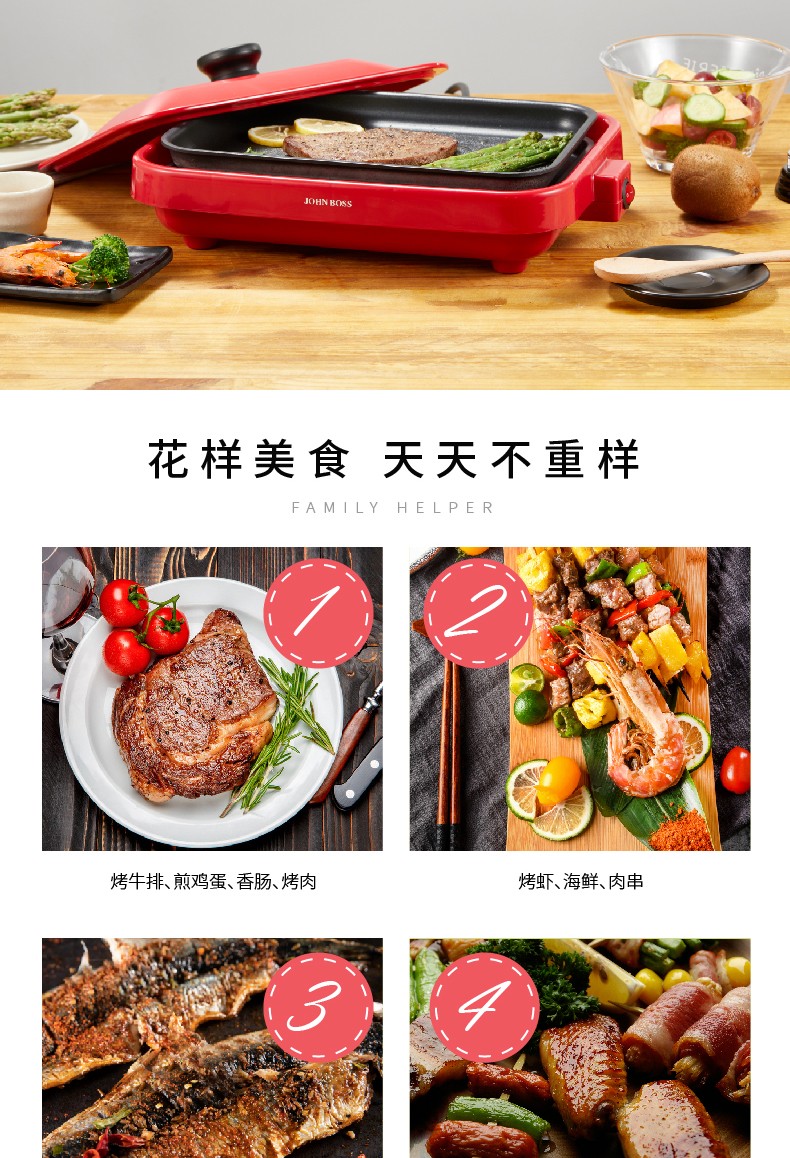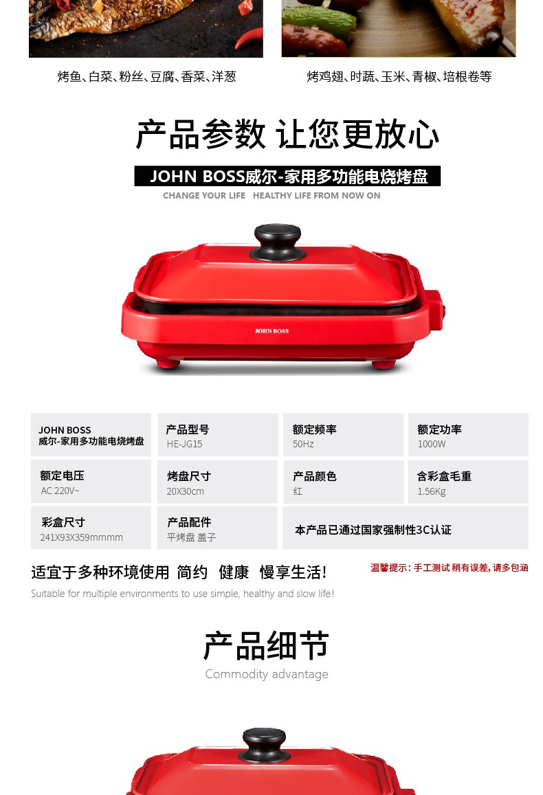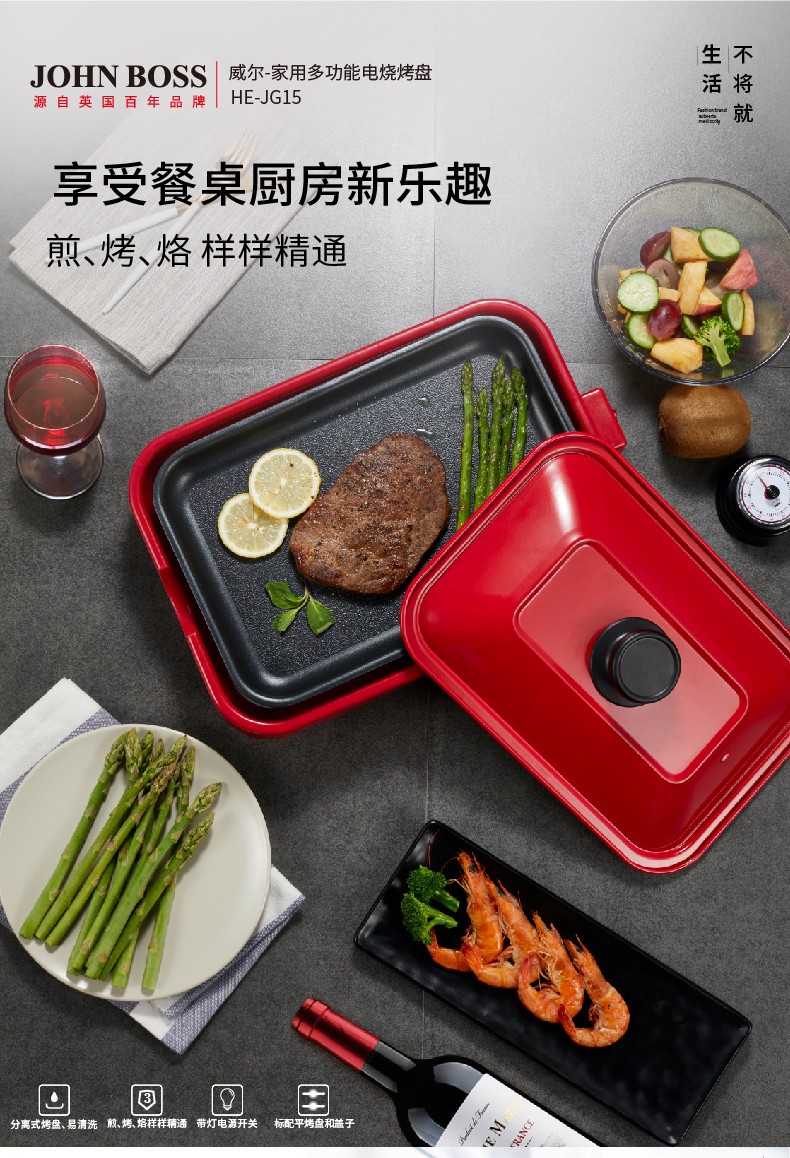 JOHN BOSS威尔-家用多功能电烧烤盘HE-JG15