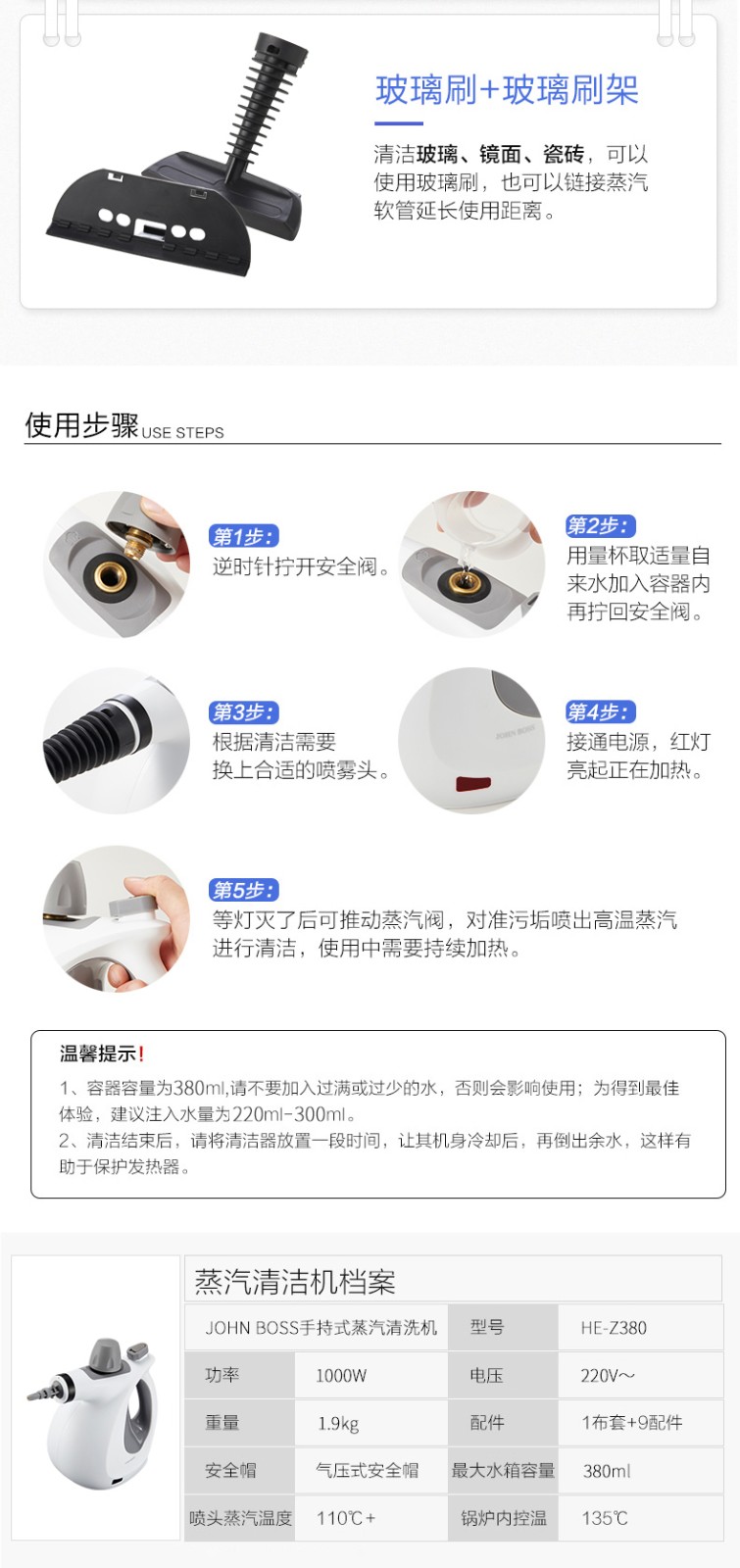 JOHN BOSS手持式蒸汽清洗机HE-Z380