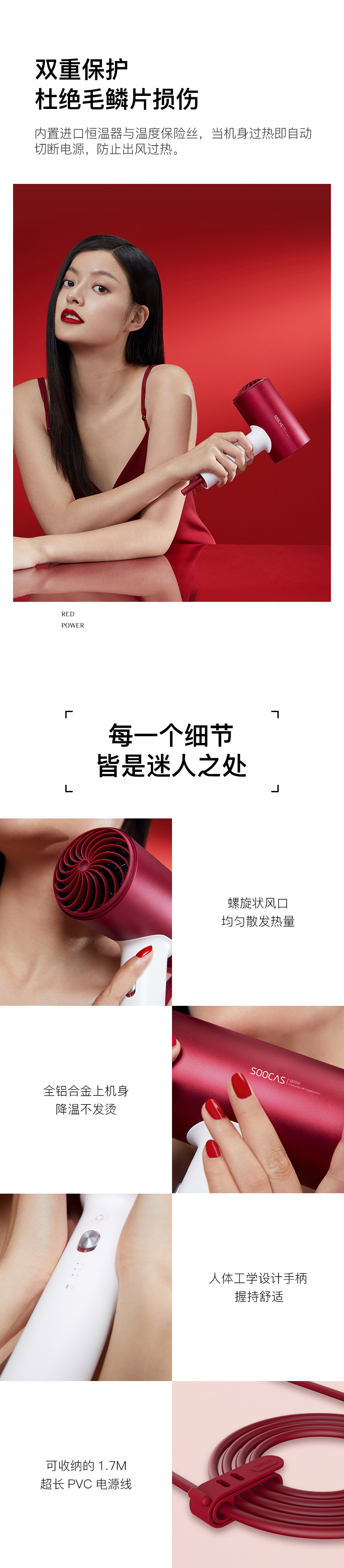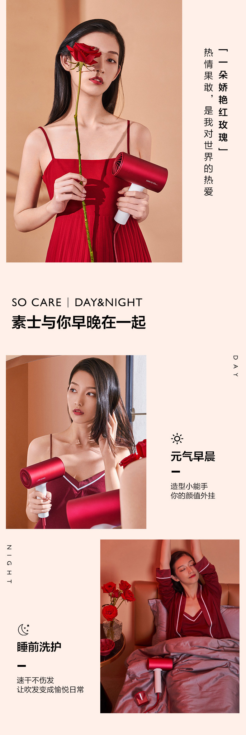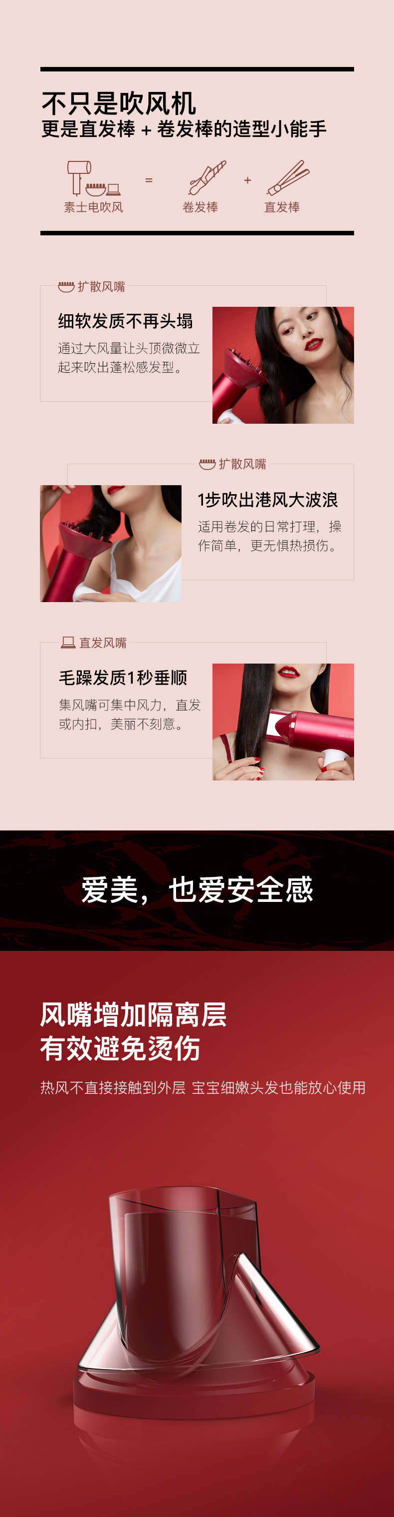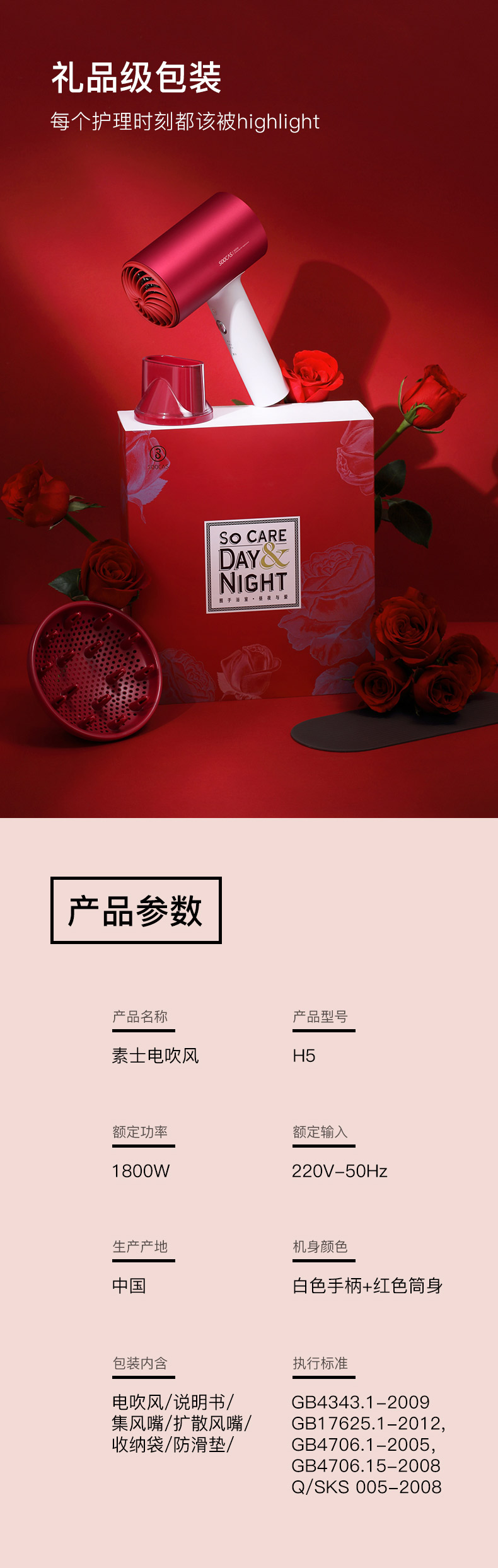 素士H5负离子电吹风-女神红