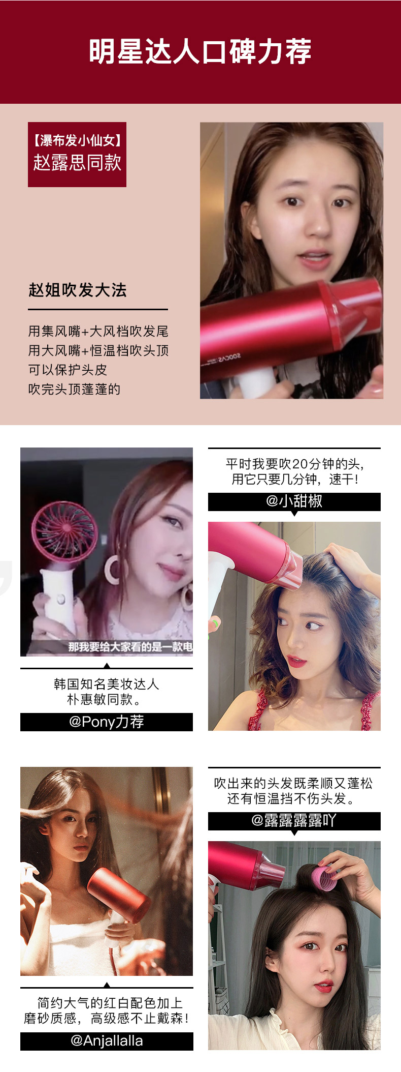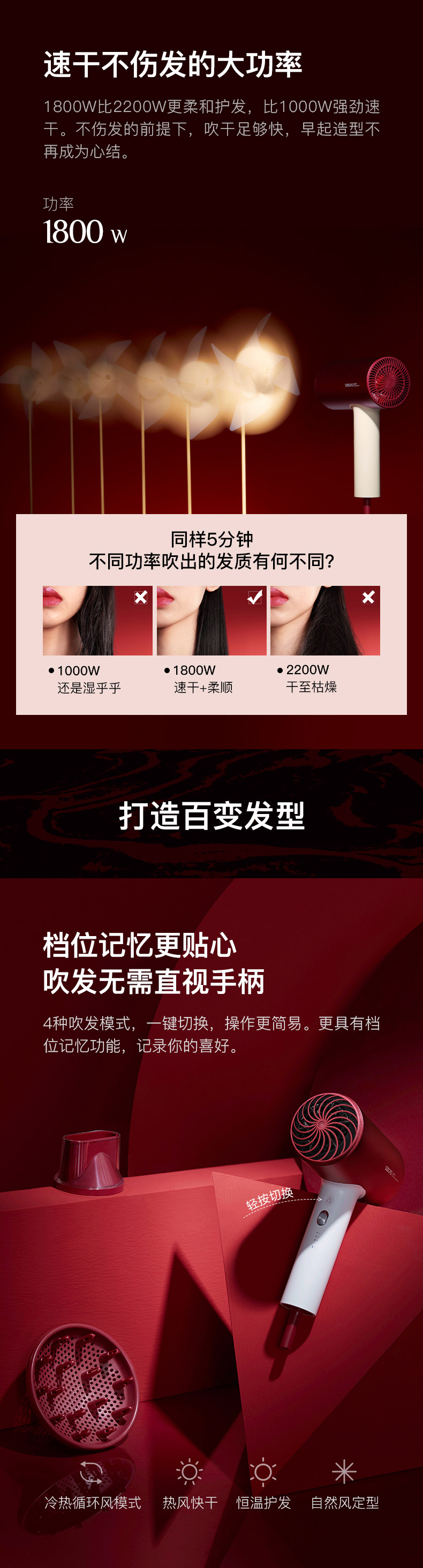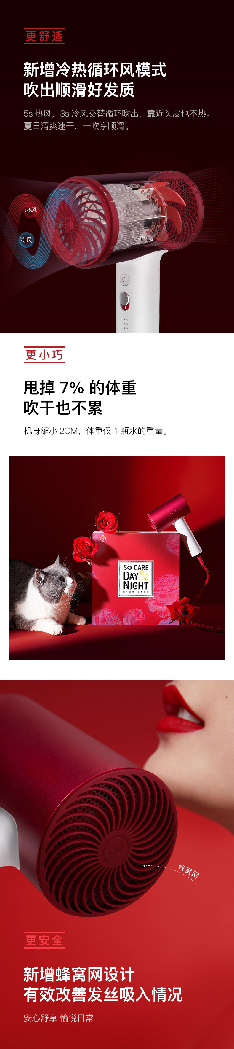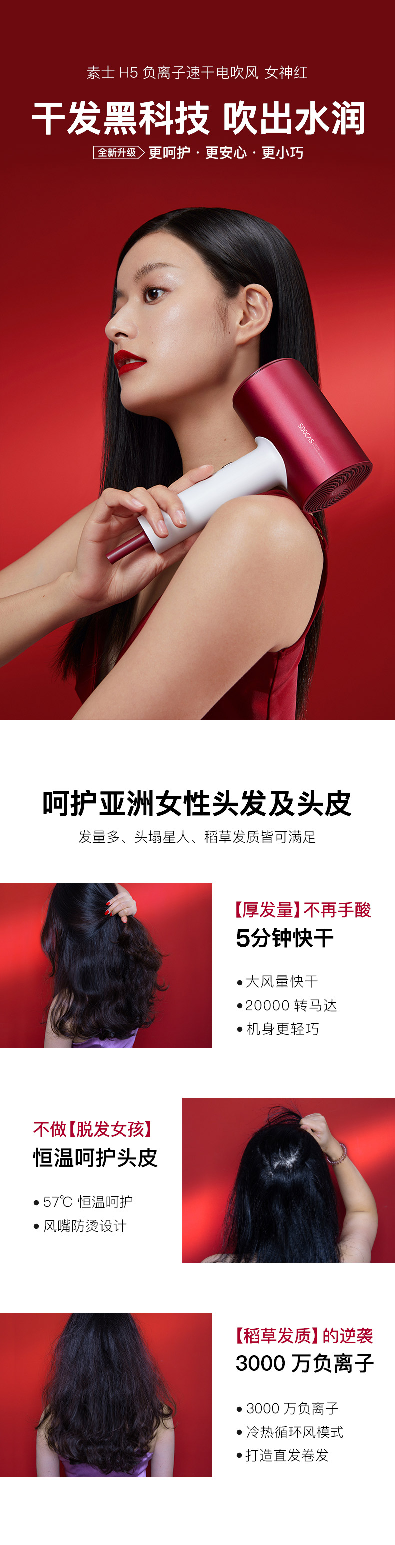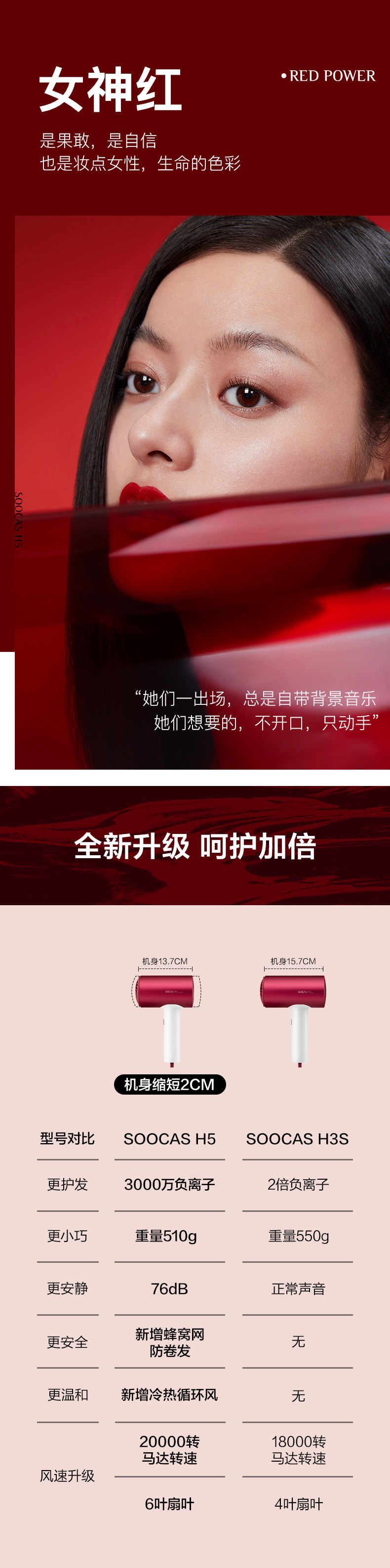 素士H5负离子电吹风-女神红