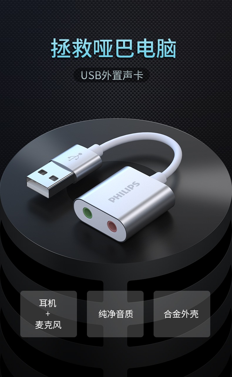您所在的位置:首页 >  >  电脑办公电脑周边 >  电脑周边 >  飞利浦(PHILIPS)USB外置独立声卡免驱USB转3.5mm音频口