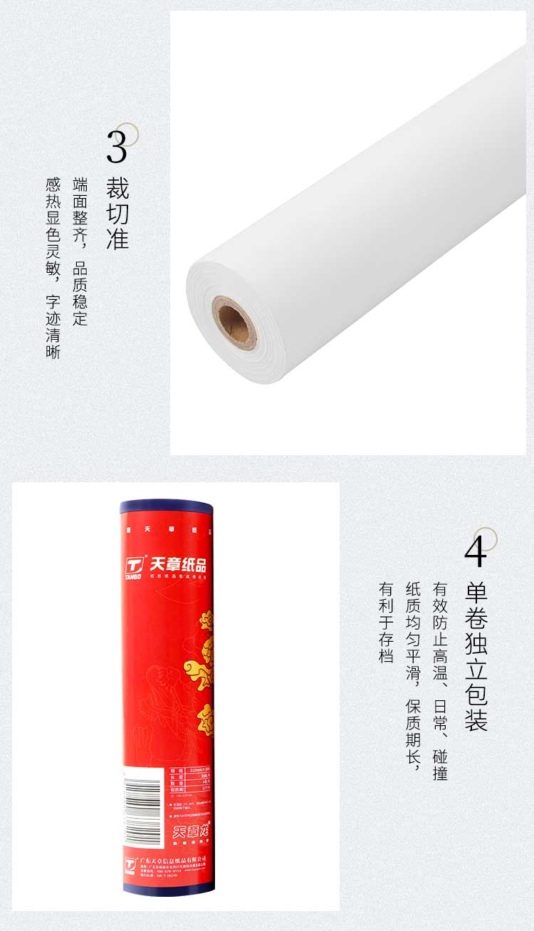 天章(TANGO)210mm30码 58G 热敏传真纸 1卷